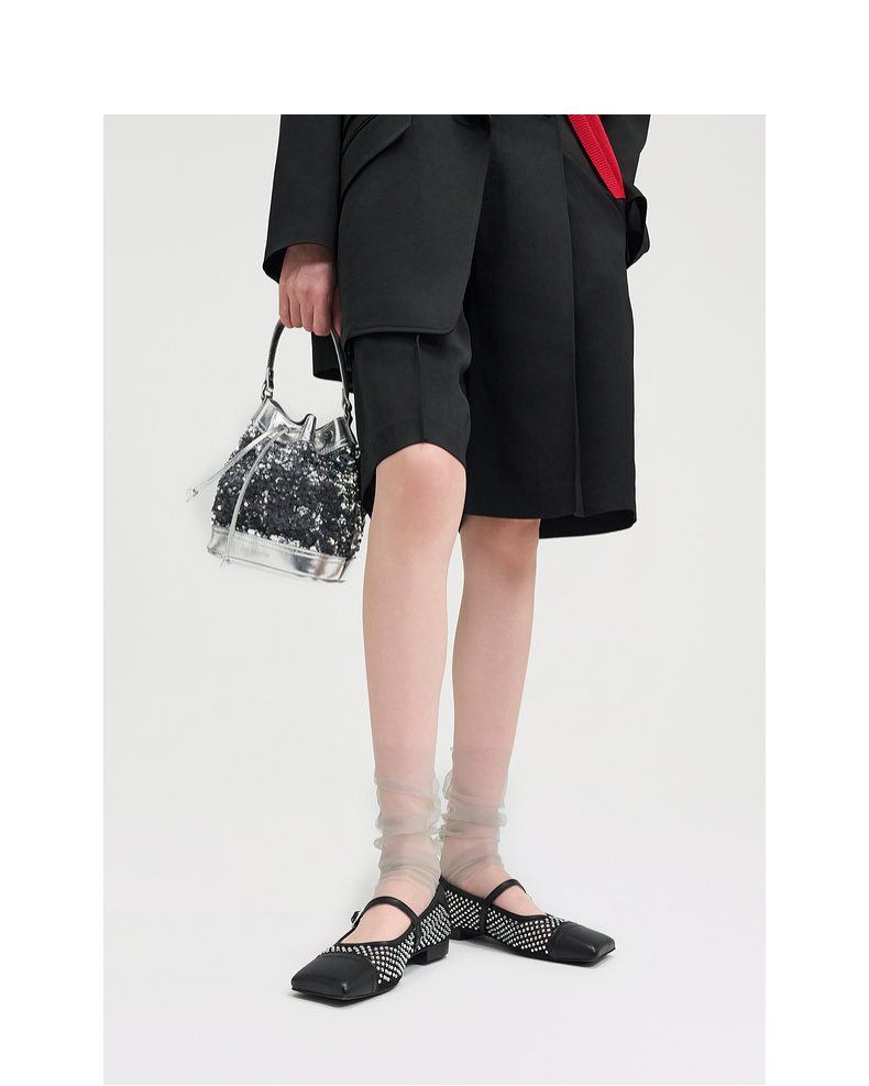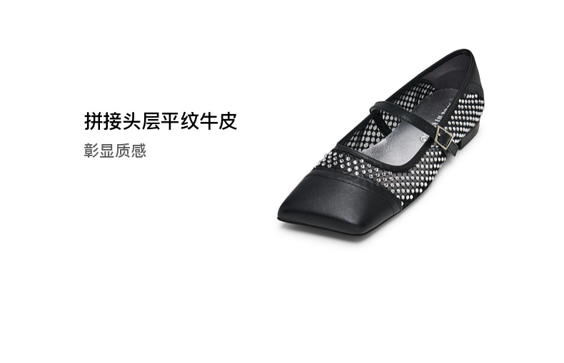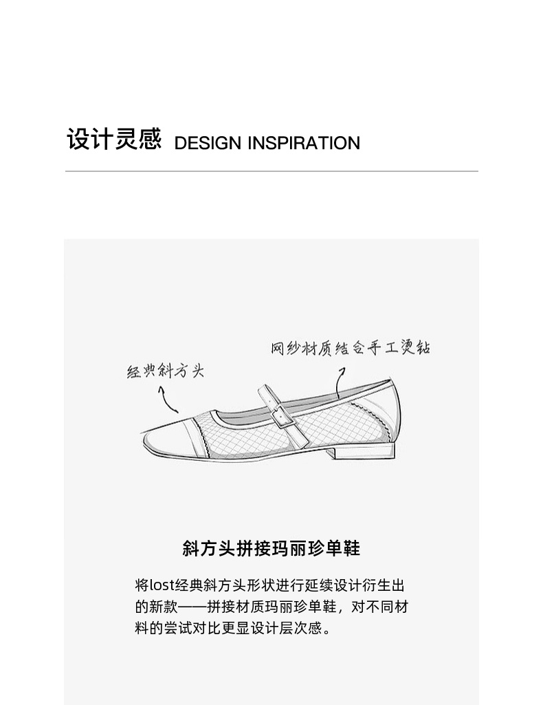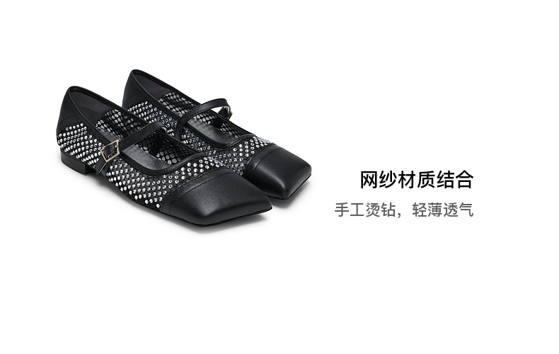 lost in echo2025春夏新款斜方头烫钻网纱玛丽珍平底芭蕾舞鞋单鞋