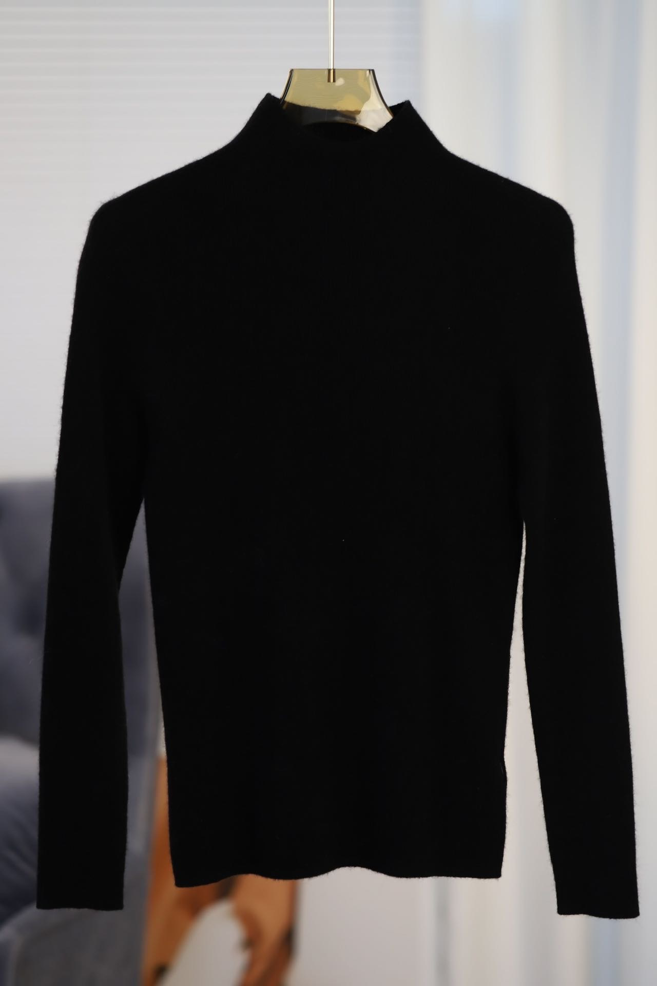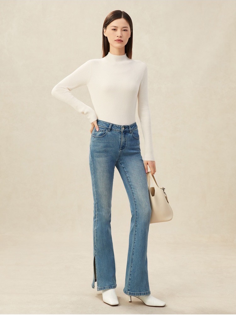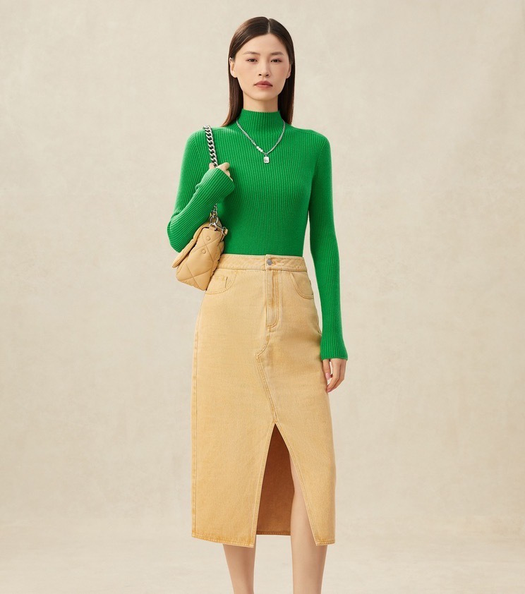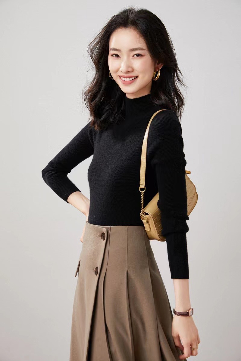 今年最流行的无疑是半高领的修身羊绒衫,