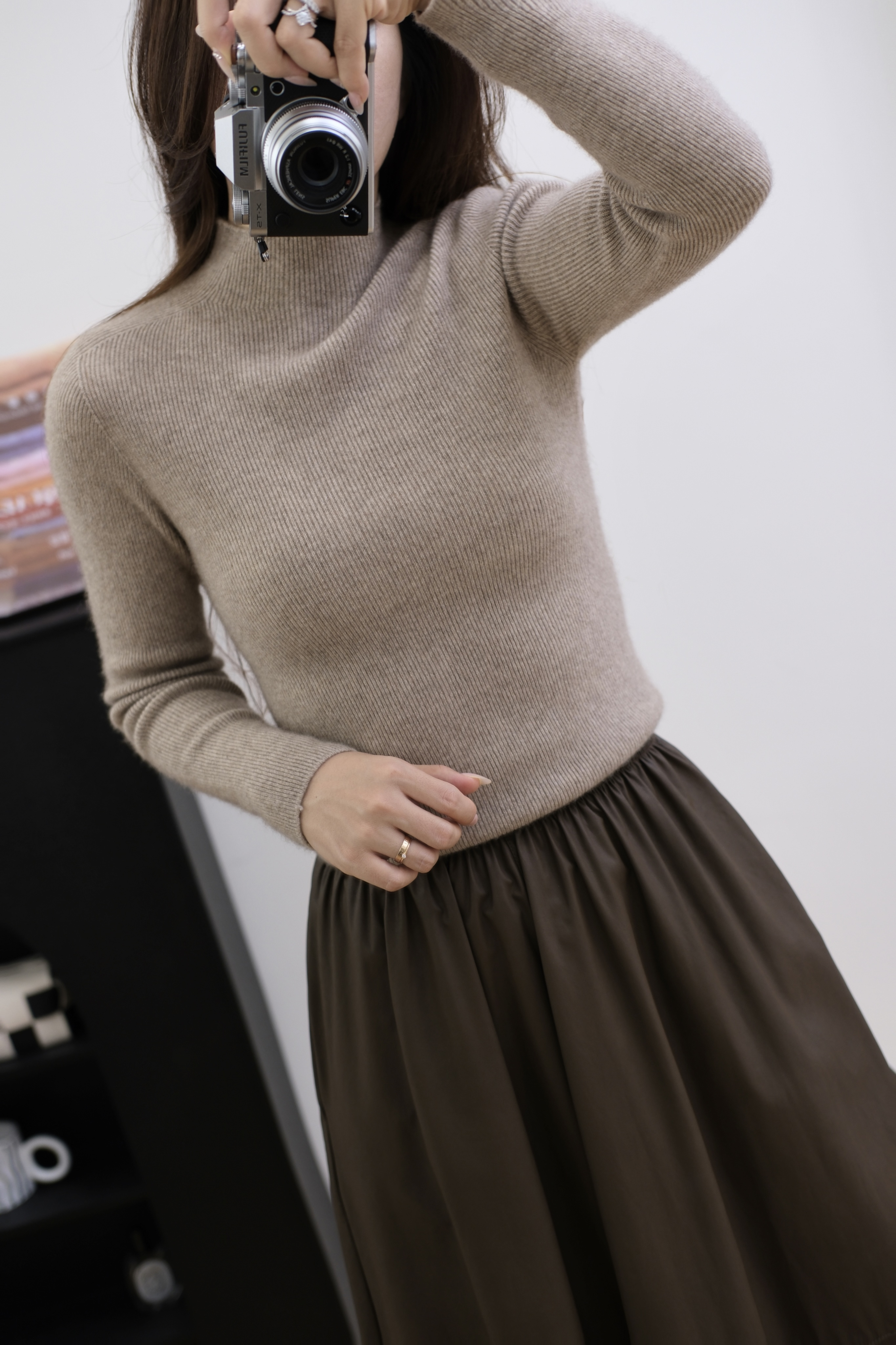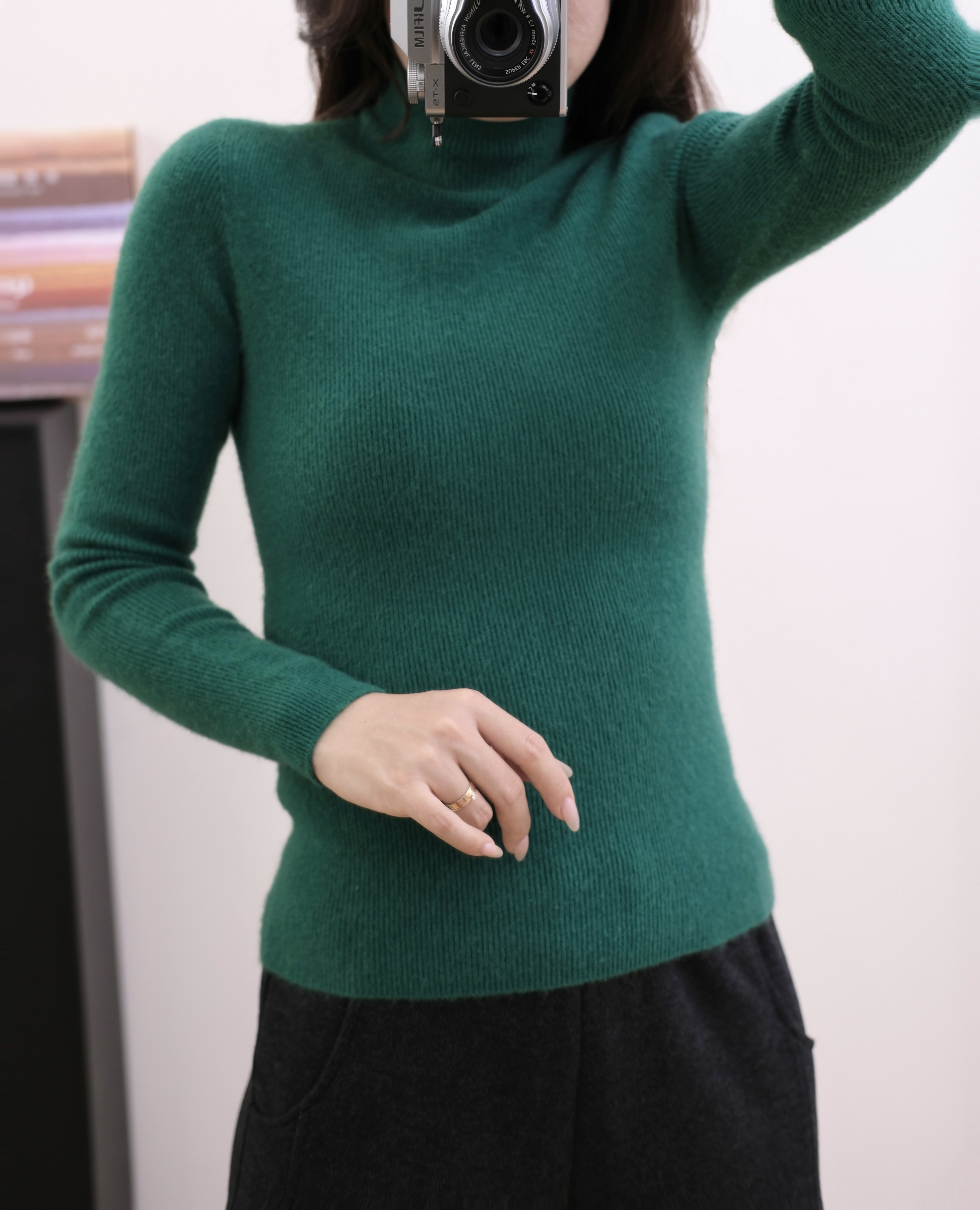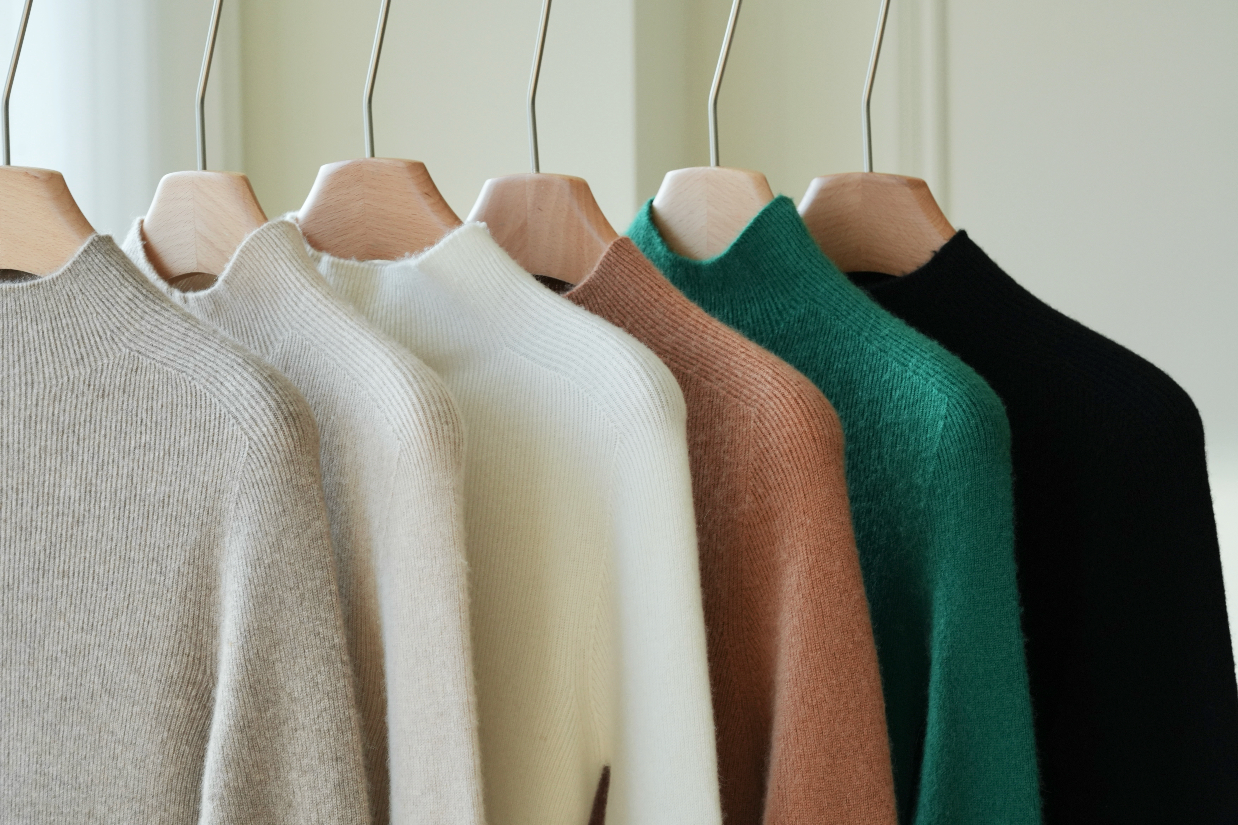 今年最流行的无疑是半高领的修身羊绒衫,