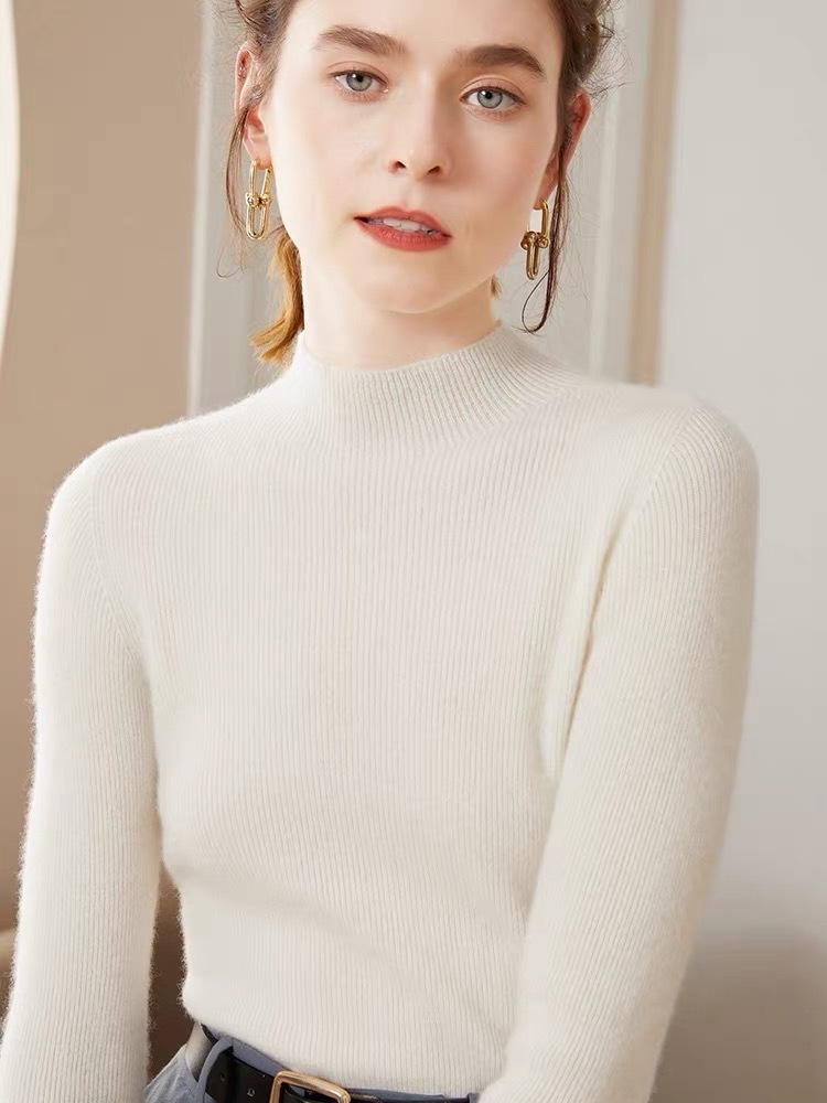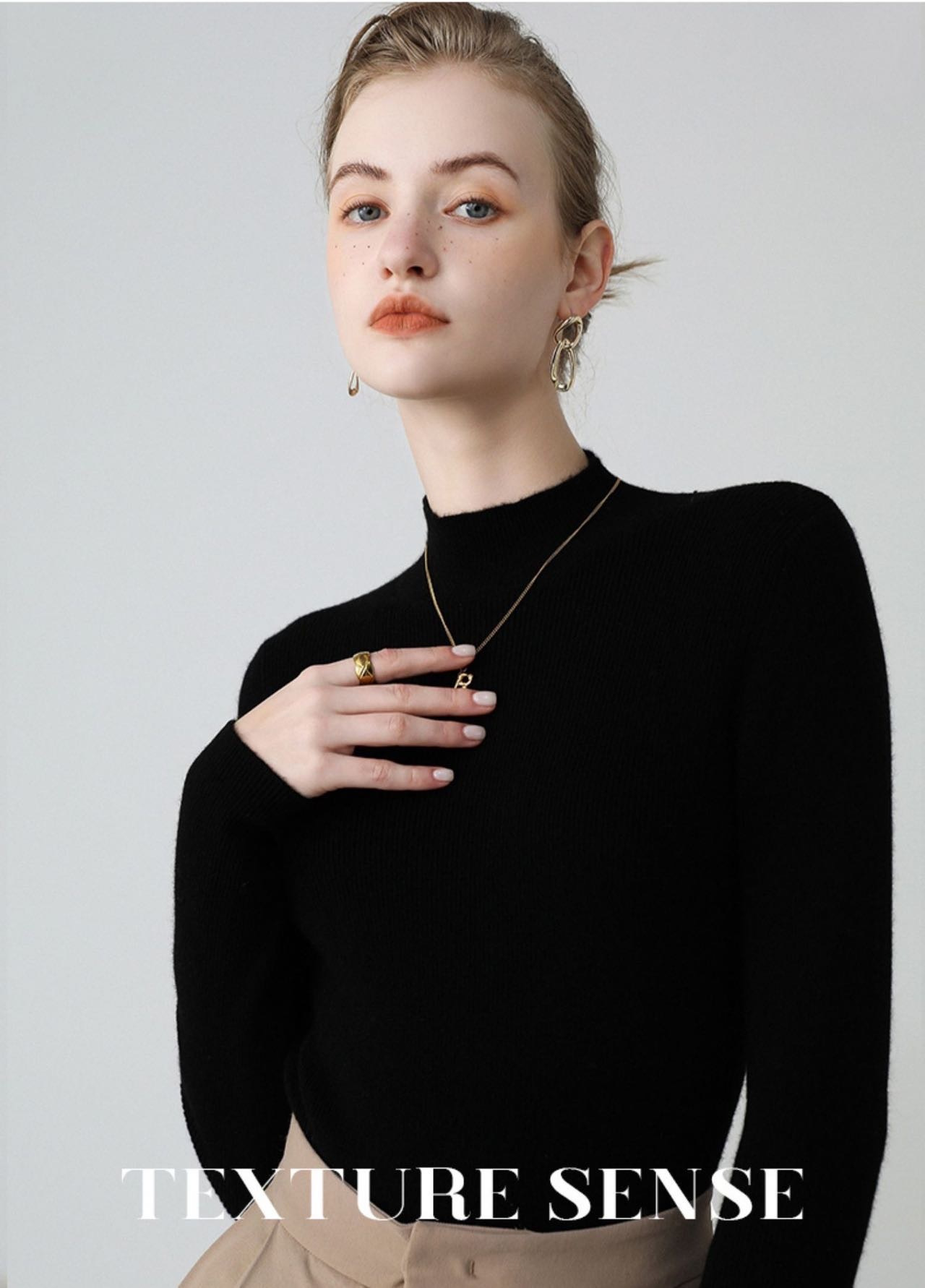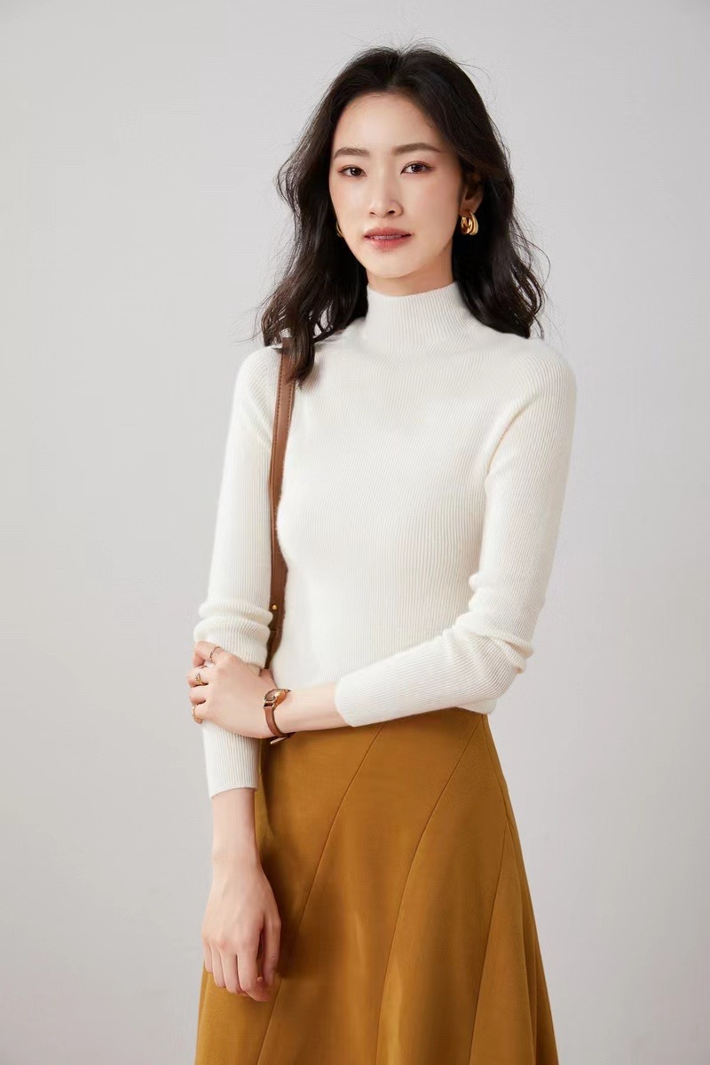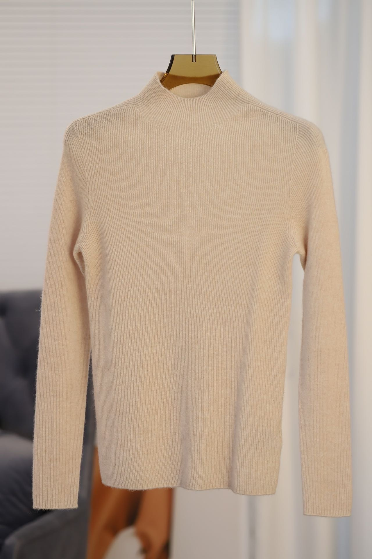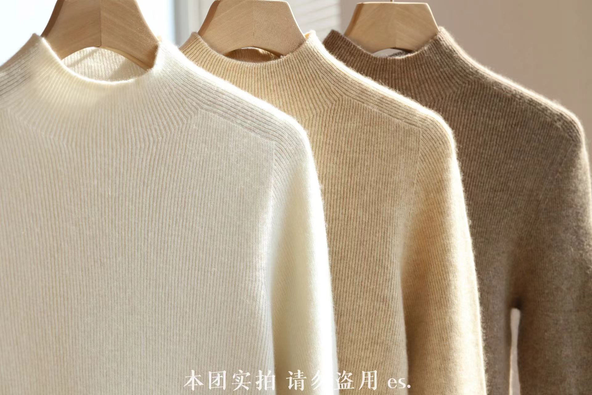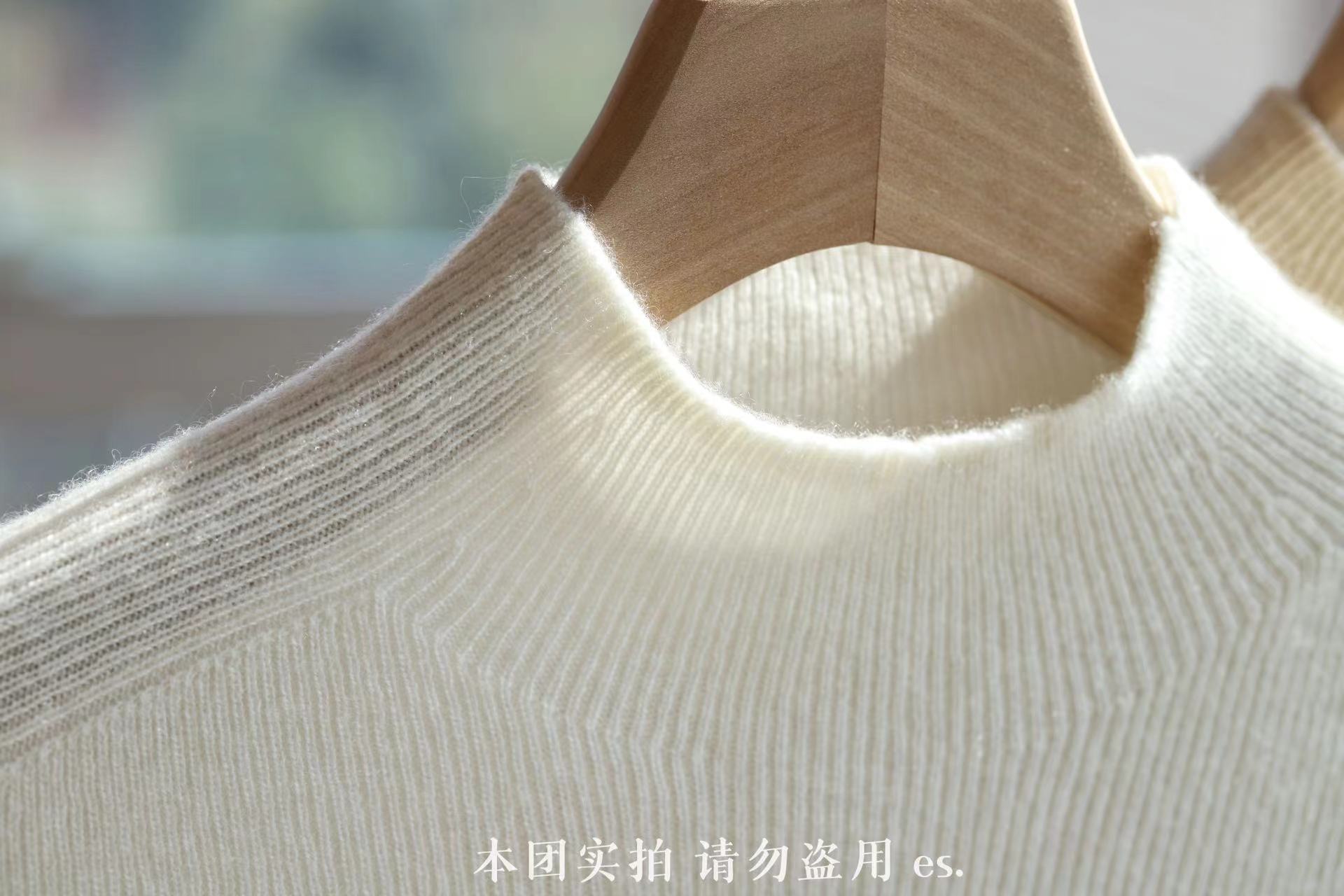 纯山羊绒衫【女士半高领修身坑条打底衫】
