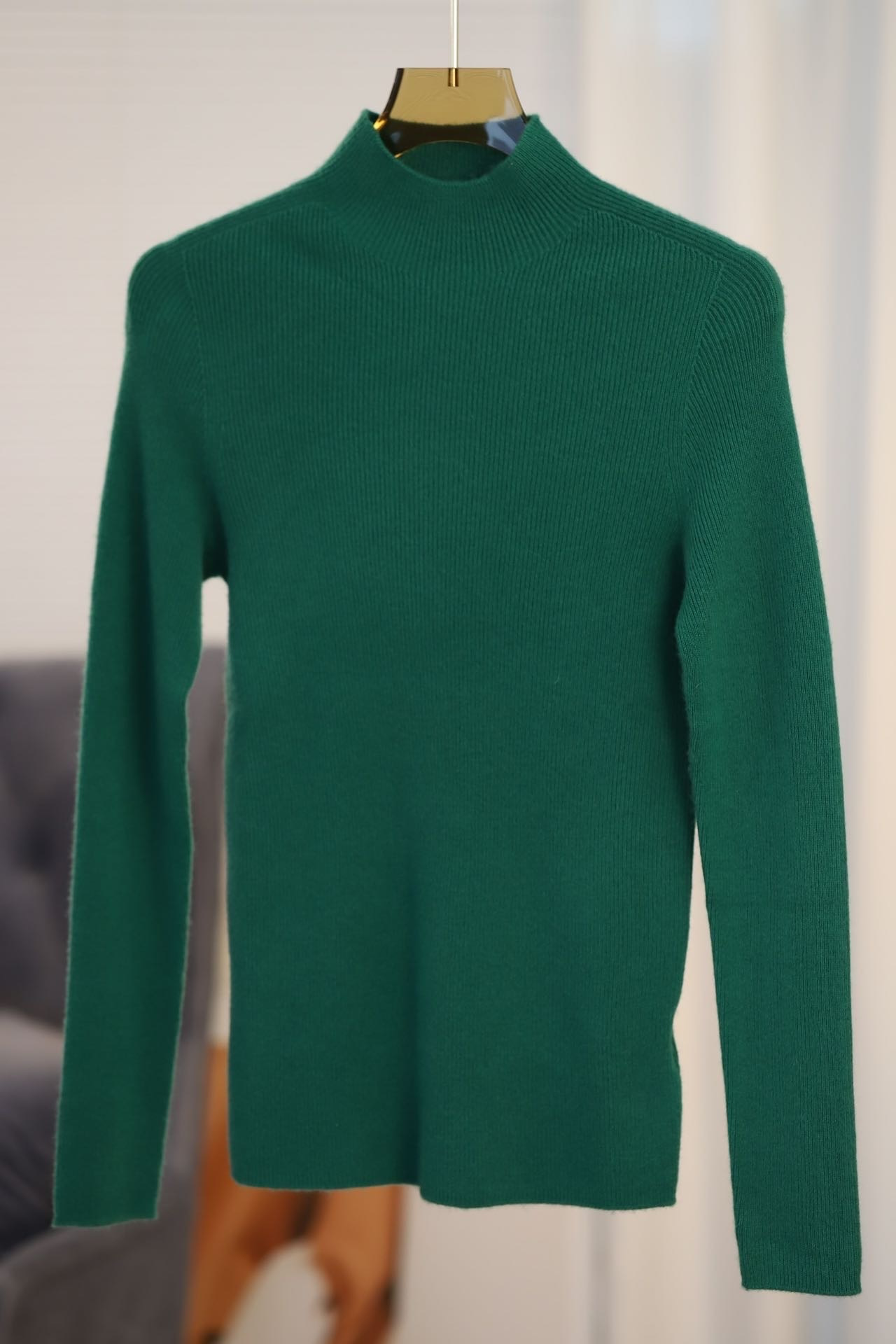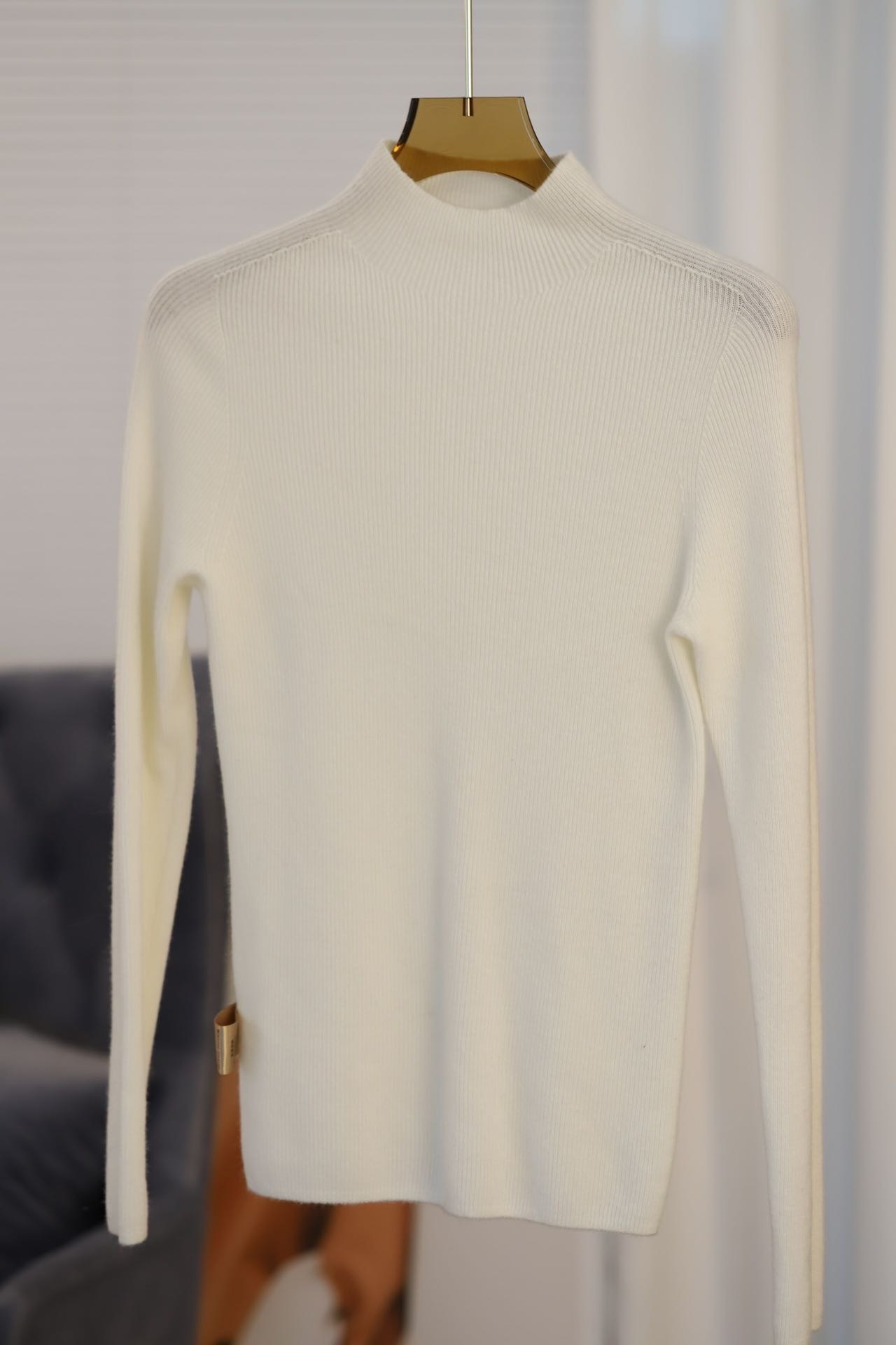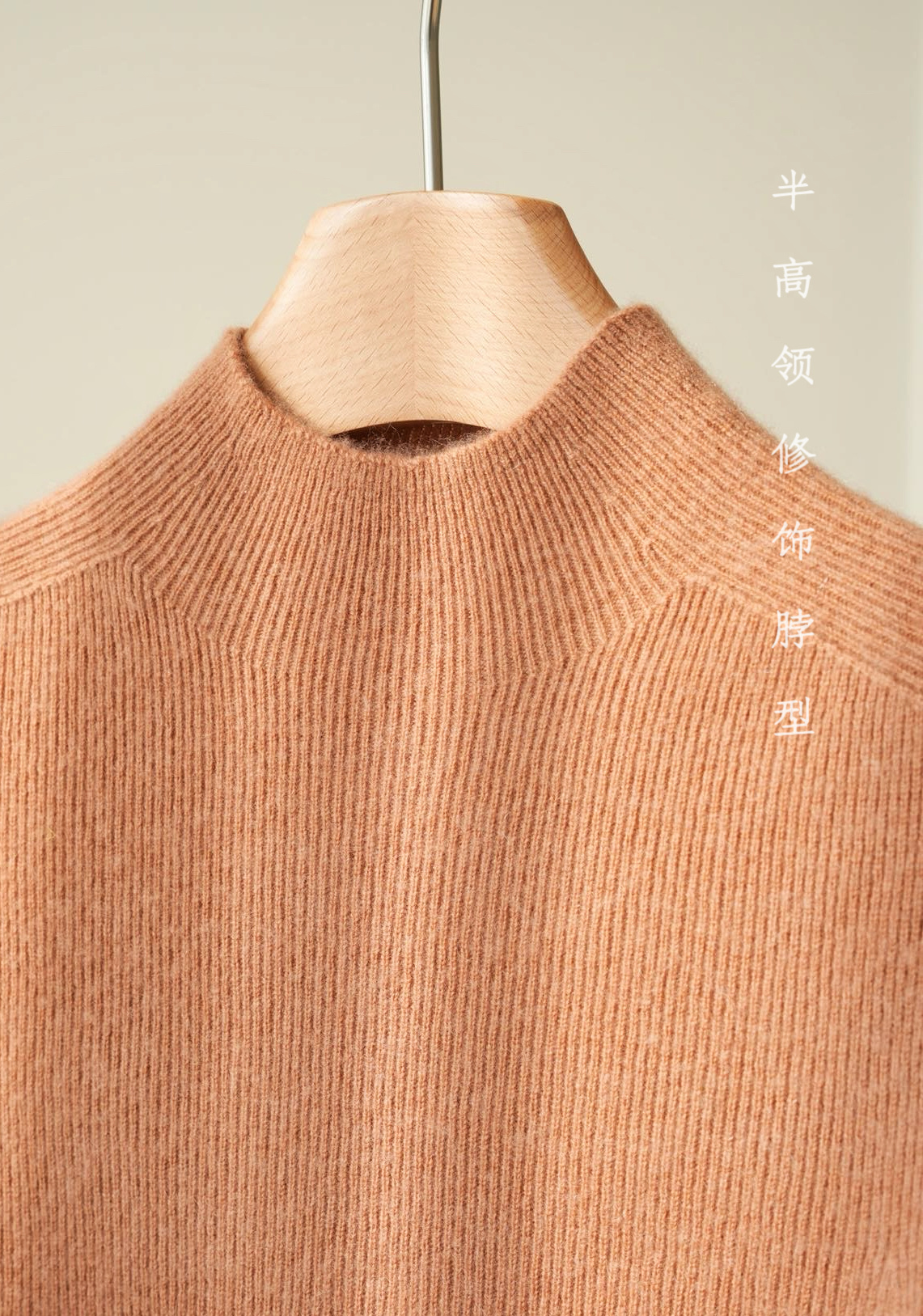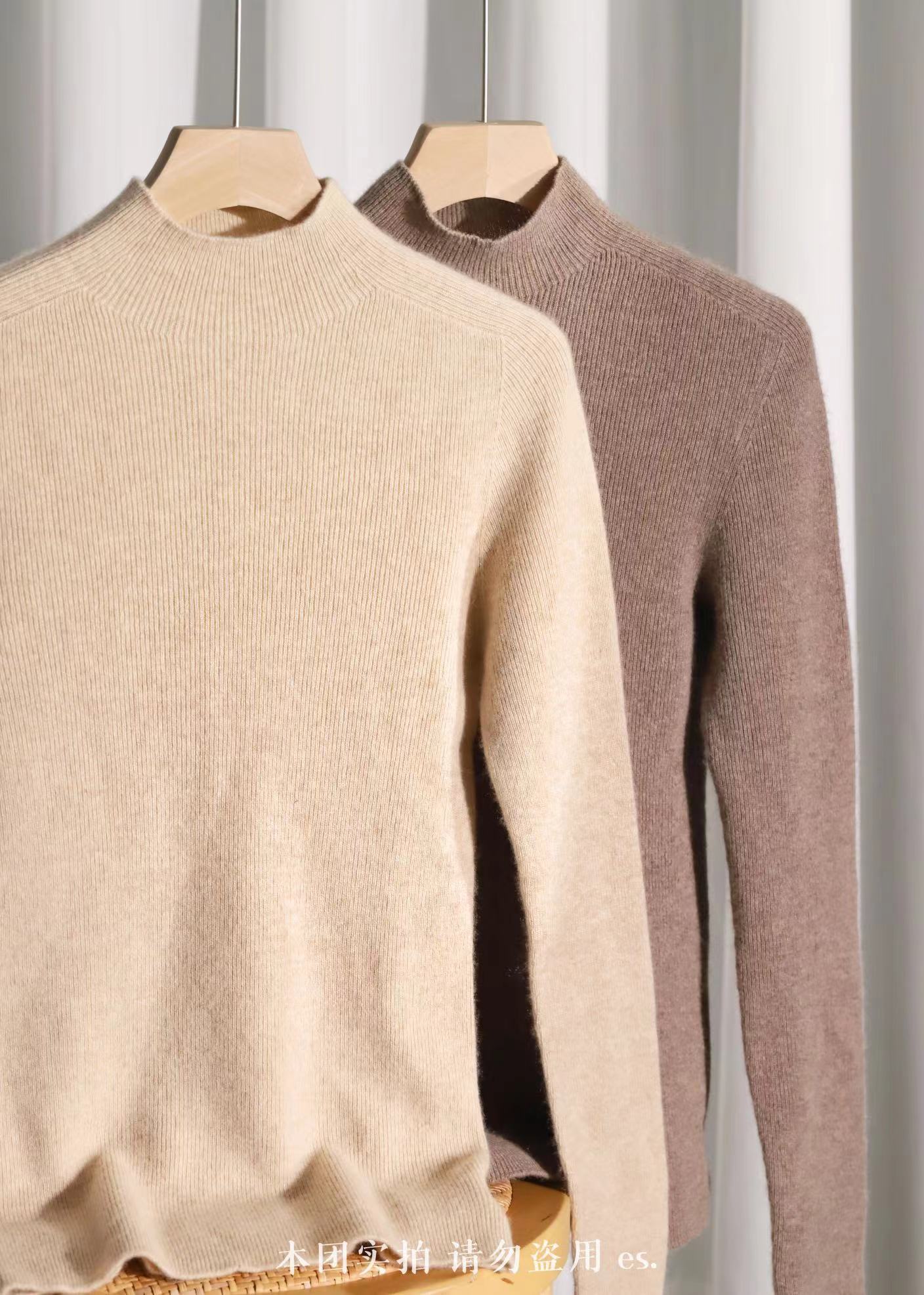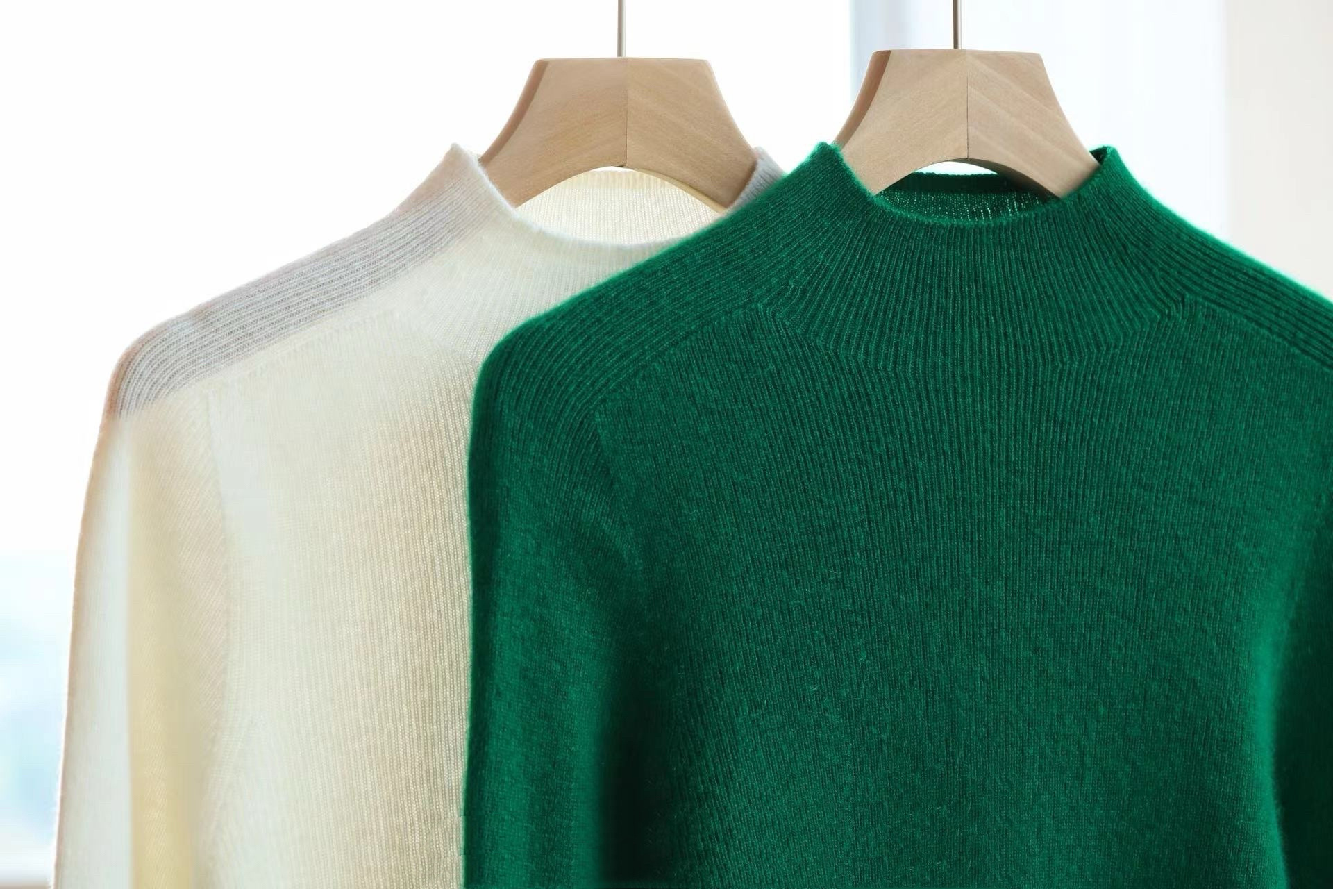 纯山羊绒衫【女士半高领修身坑条打底衫】