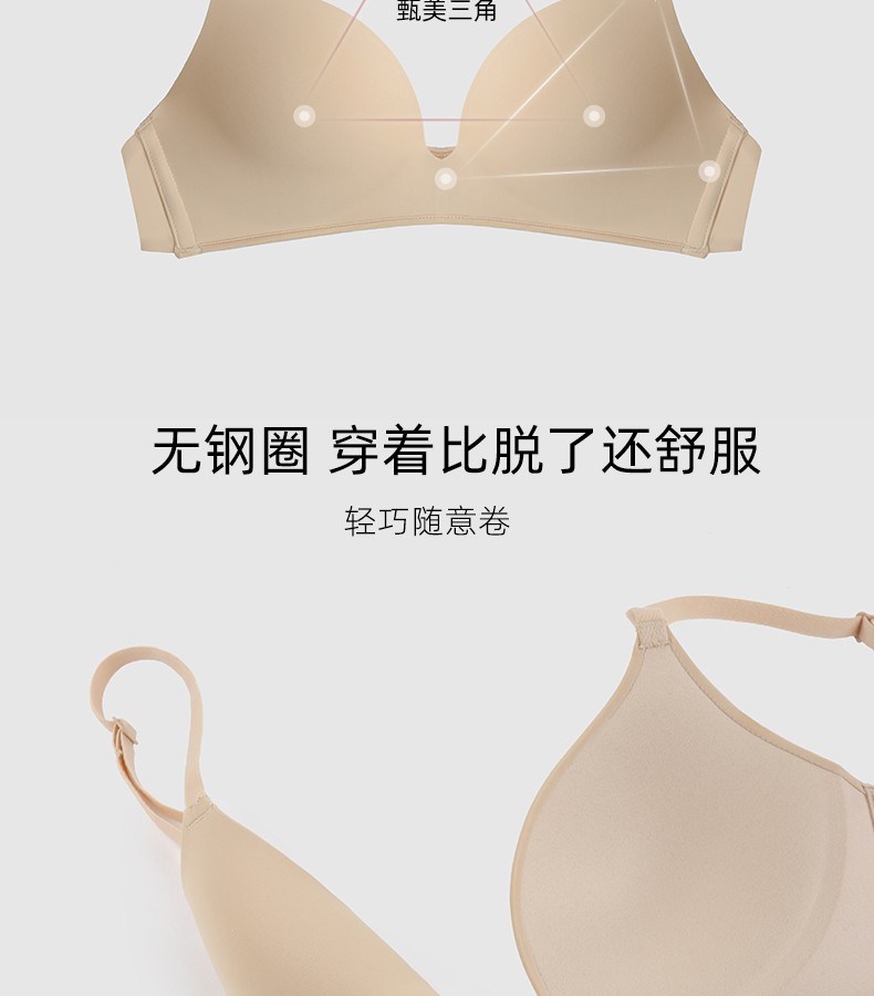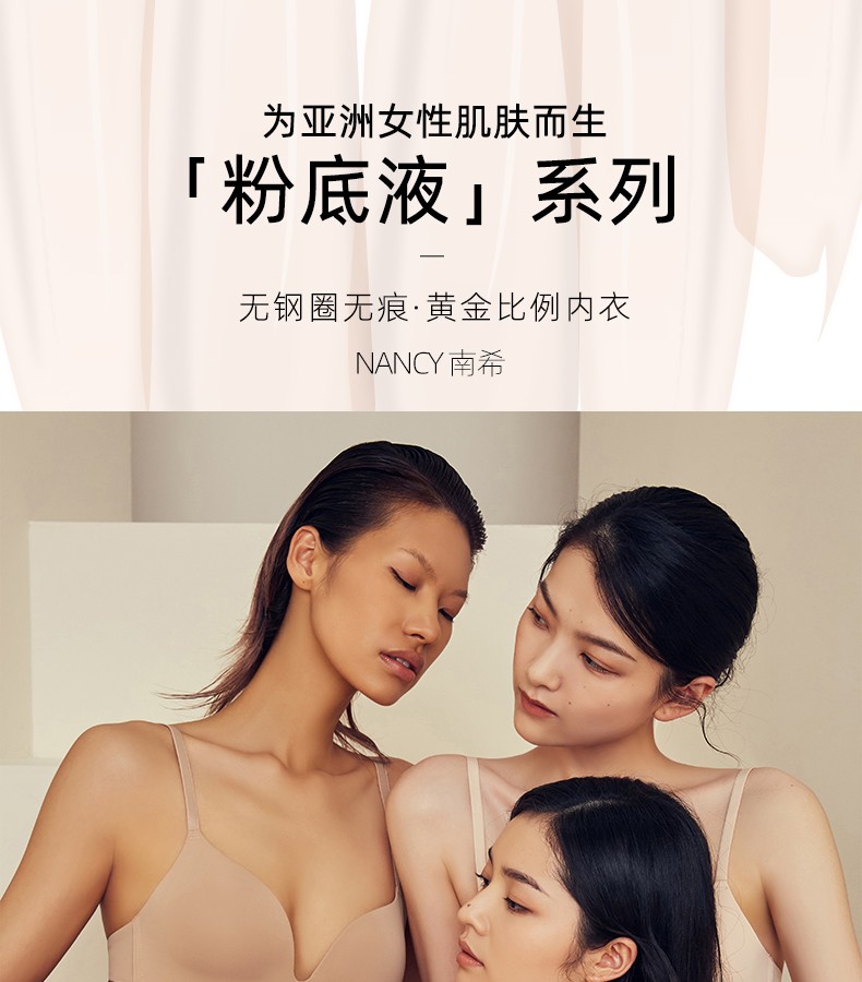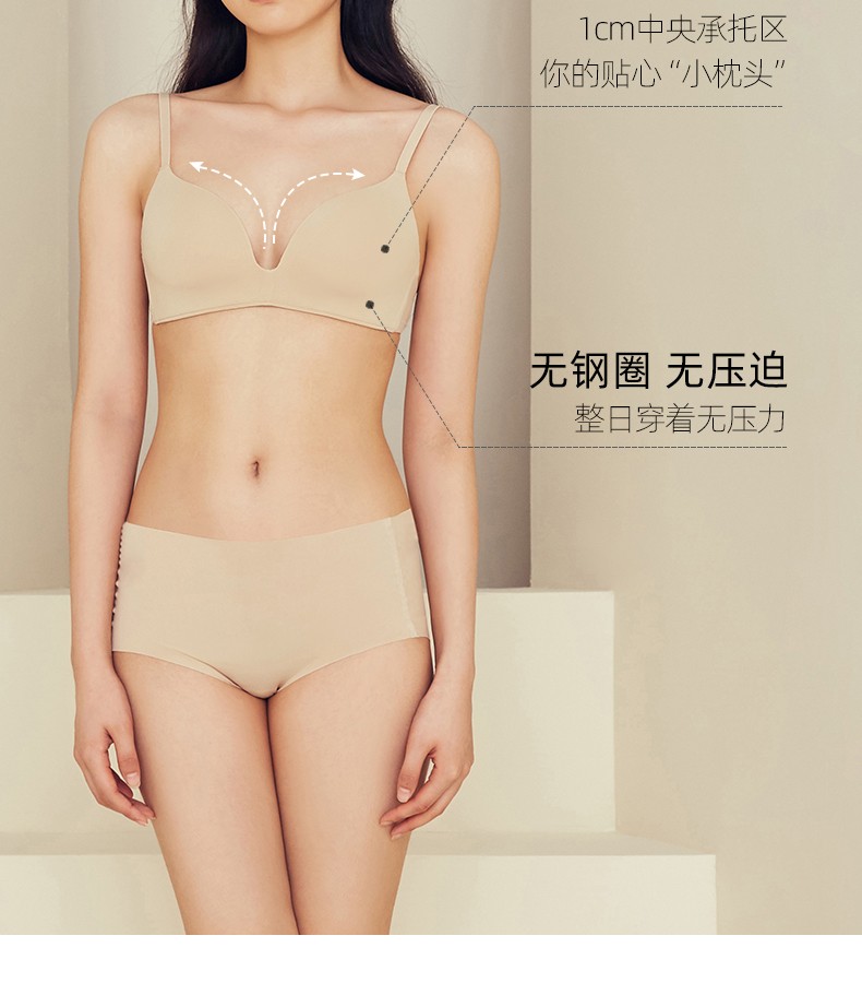 好奇蜜斯肤色粉底液舒适无钢圈无痕内衣女夏季薄款文胸罩套装隐形南希