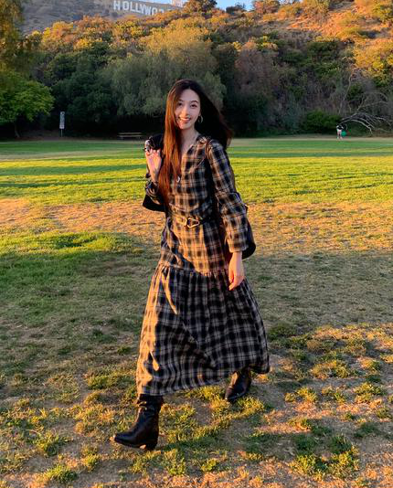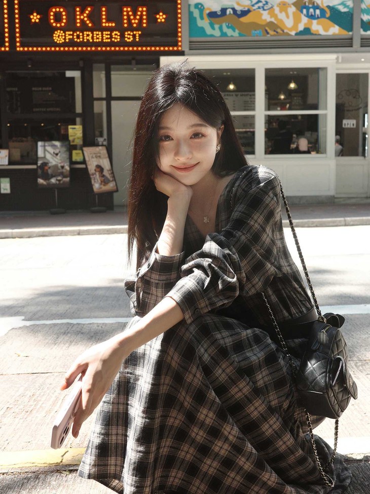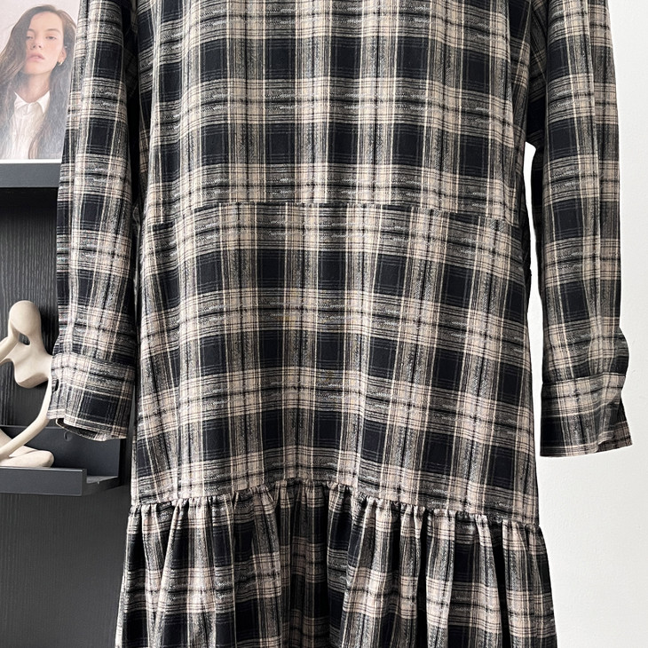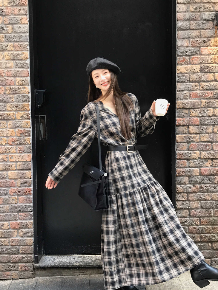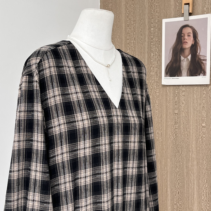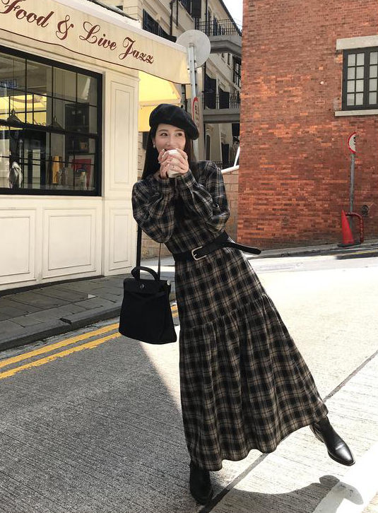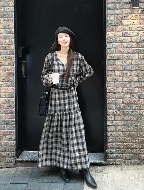 秋天怎么能没有一条格纹连衣裙! 这条真的是我的本命裙 穿上直接氛围感拉满~ 经典 V 领设计太懂女生了! 轻轻拉长颈部线条,把脸型修饰得超好看 视觉上就很显瘦,脸大的姐妹放心冲 下摆的分割抽褶设计太加分!