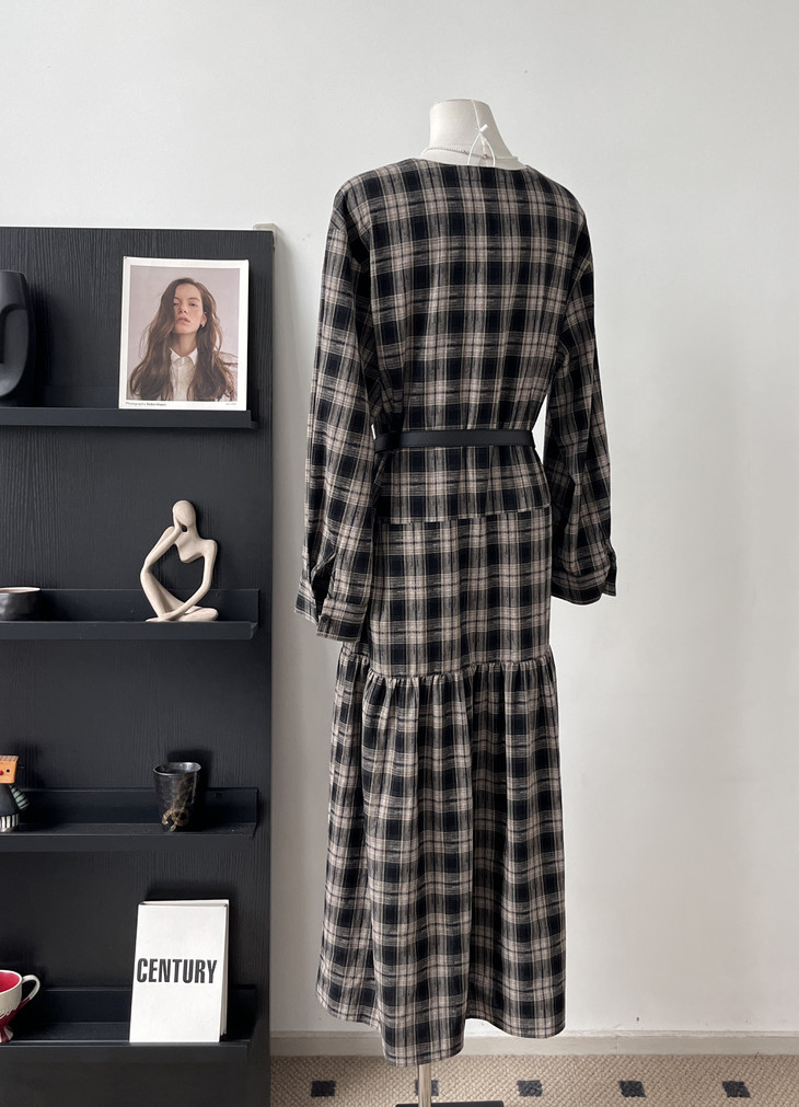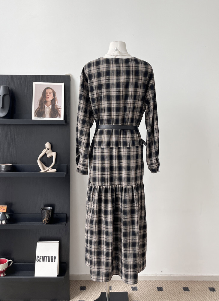 👏秋天本命裙❗️博主同款😍【AUChris复古抽褶设计感格子连衣裙ACU081301】💥穿上直接氛围感拉满~ ▪️精选的棉感色织格纹面料,🌸自带复古感 ▪️经典 V 领脸型修饰得超好看