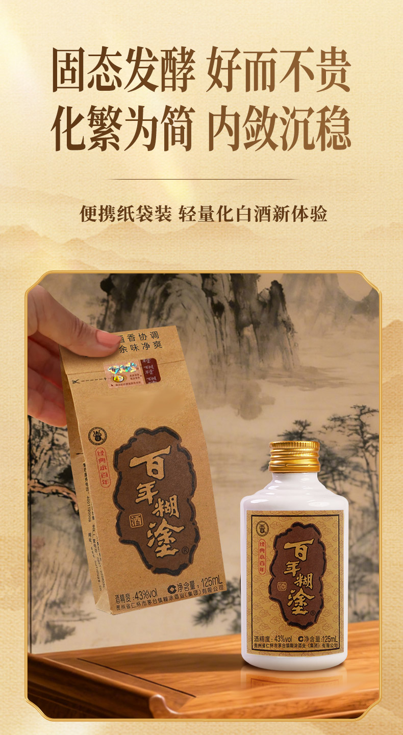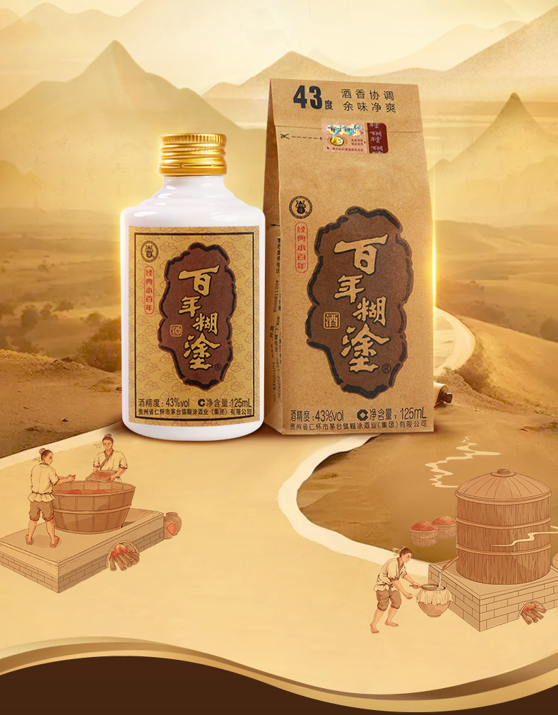 百年糊涂 浓香型白酒 43度 125mL*24瓶 经典小百年 【官方正品】