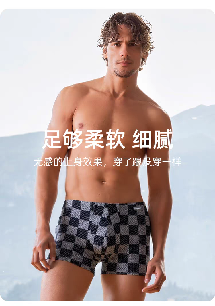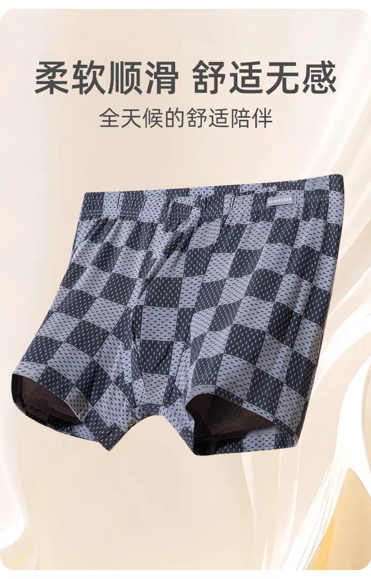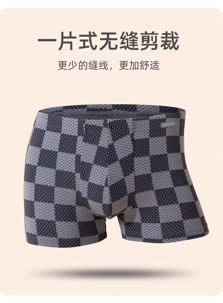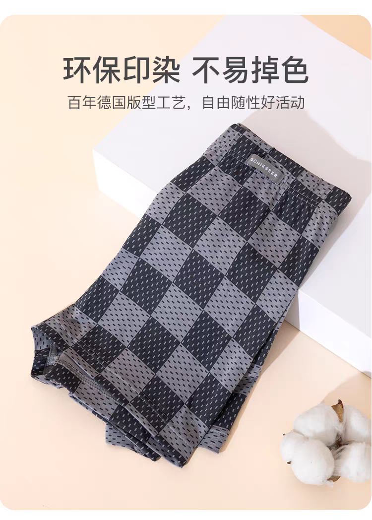 【经典棋盘格莫代尔】SCHIESSER德国舒雅男士莫代尔内裤款印花亲肤透气中腰平角底裤39/25523T