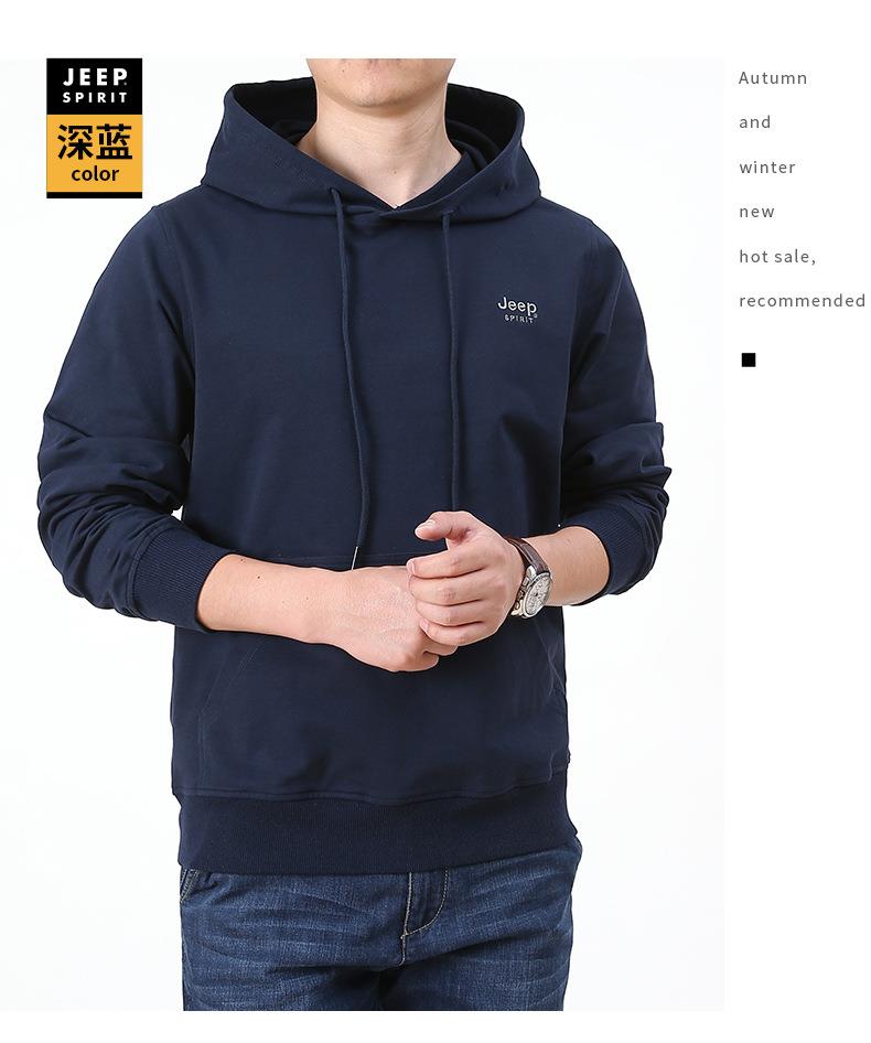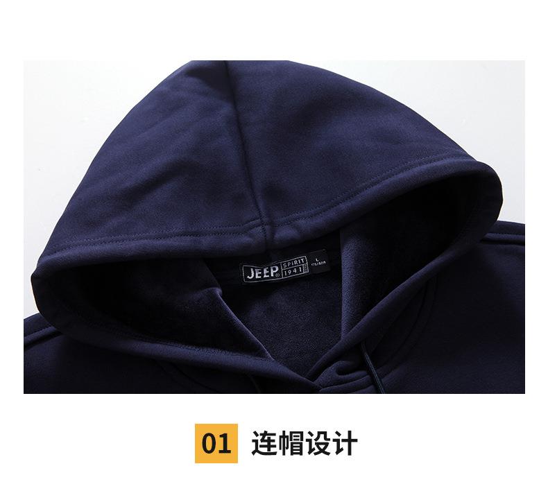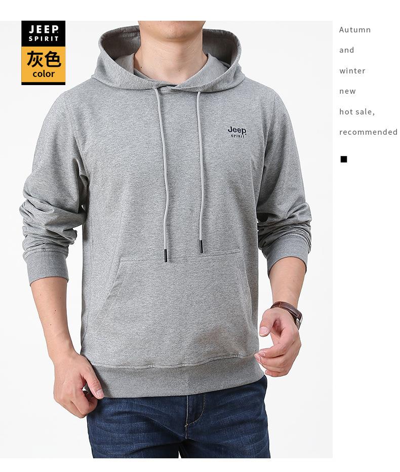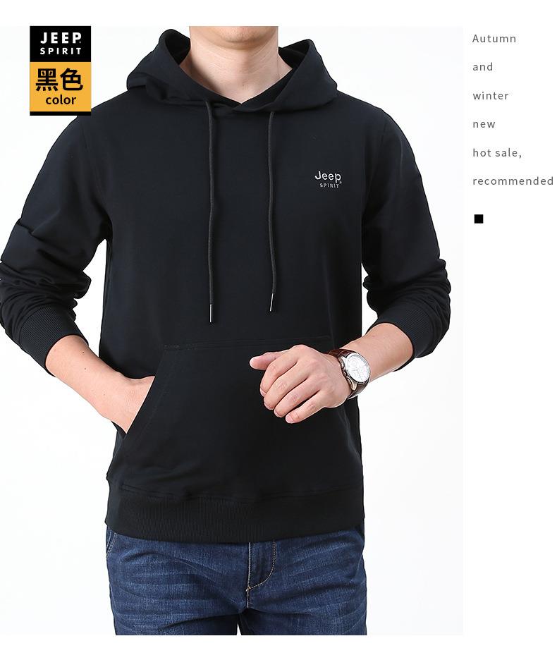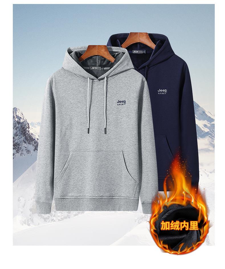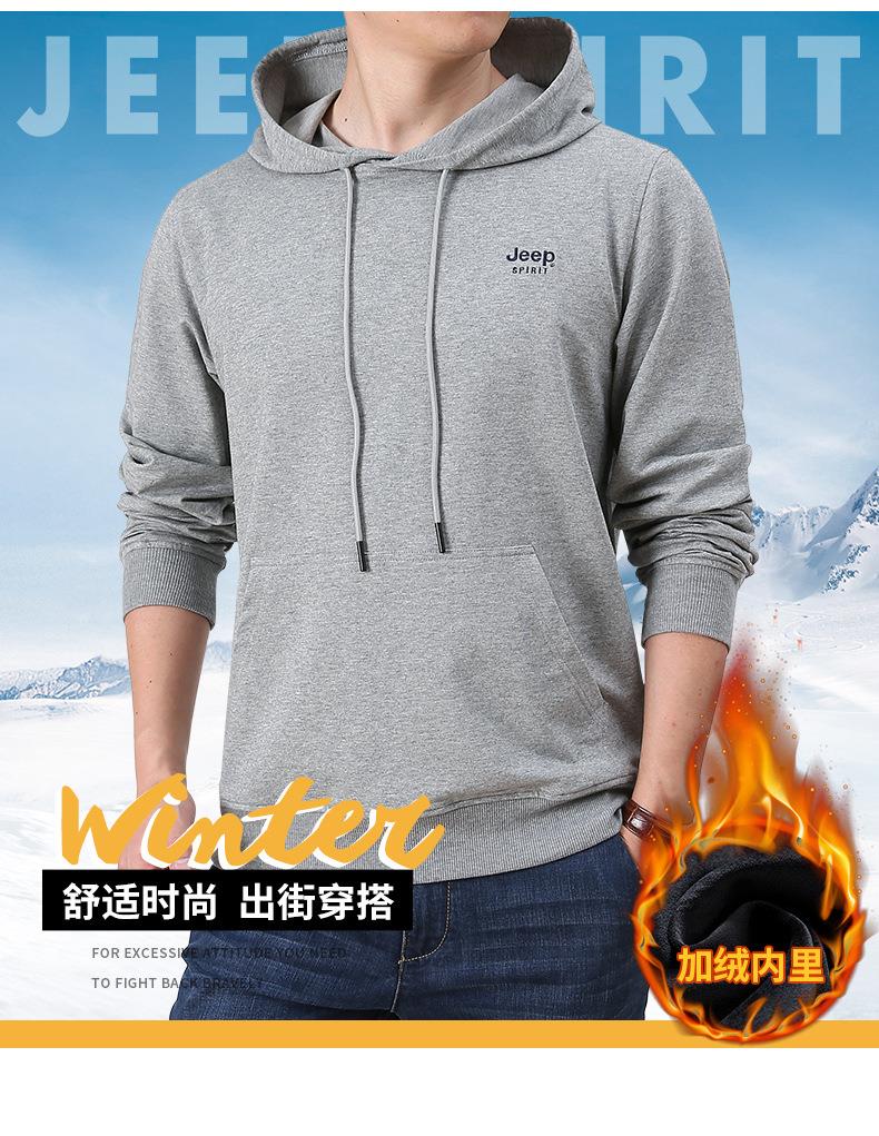 JEEP SPIRIT加绒卫衣男秋厚百搭休闲长袖青年连帽打底衫HL2022B