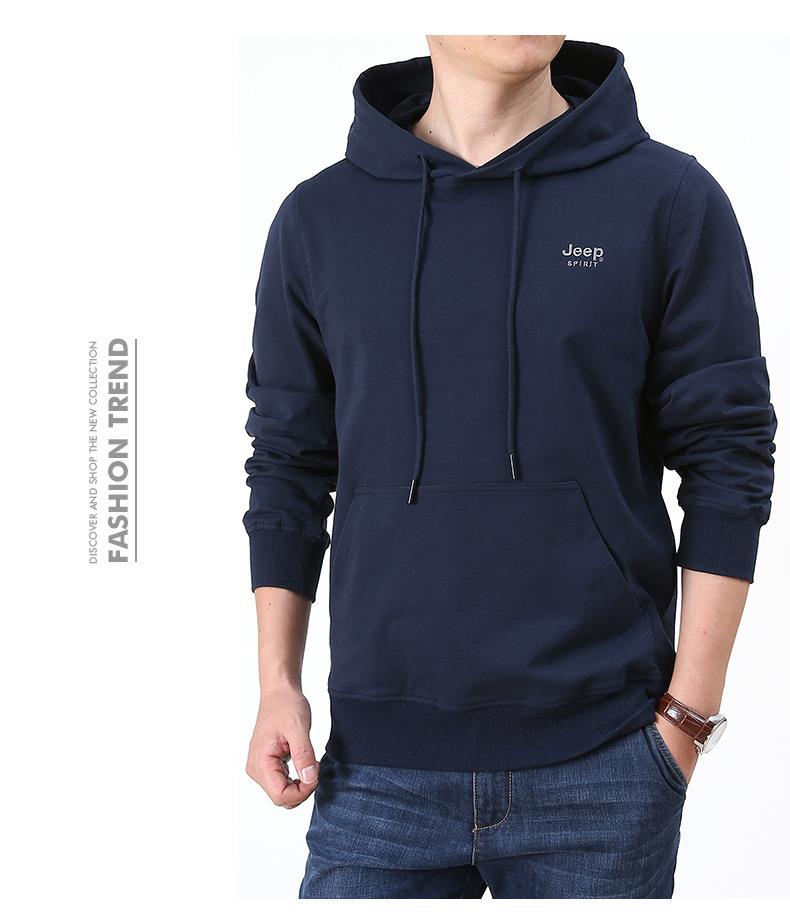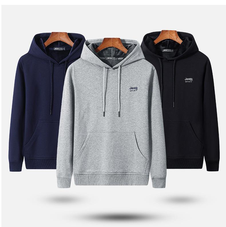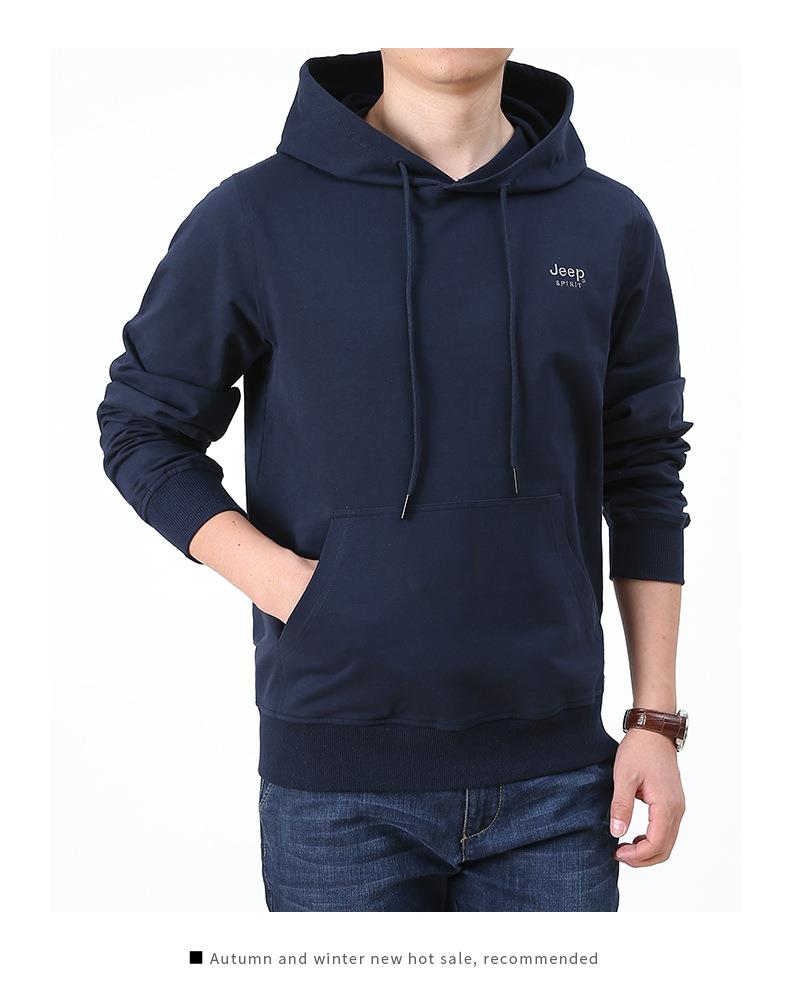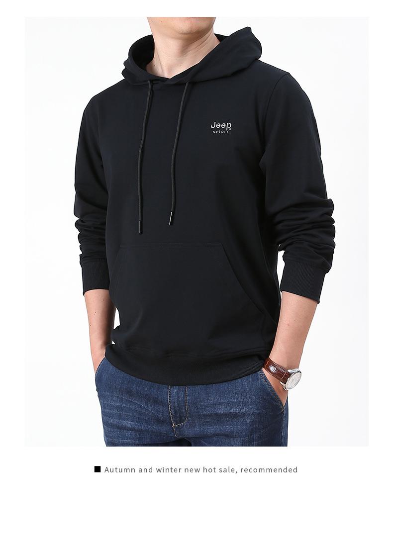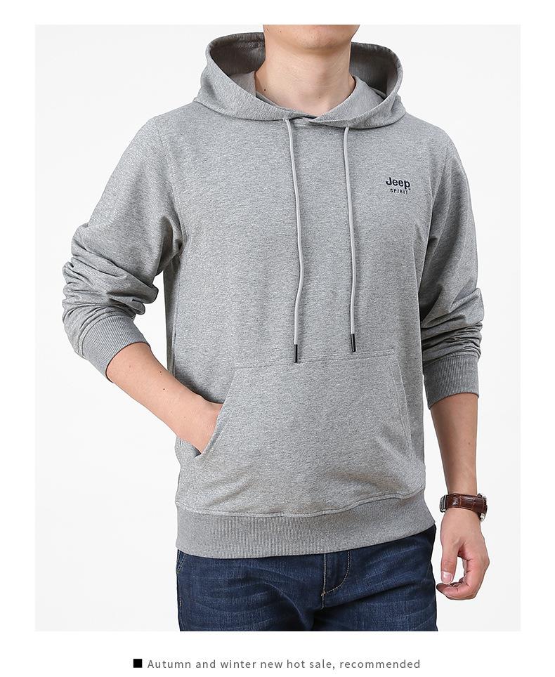 JEEP SPIRIT加绒卫衣男秋厚百搭休闲长袖青年连帽打底衫HL2022B