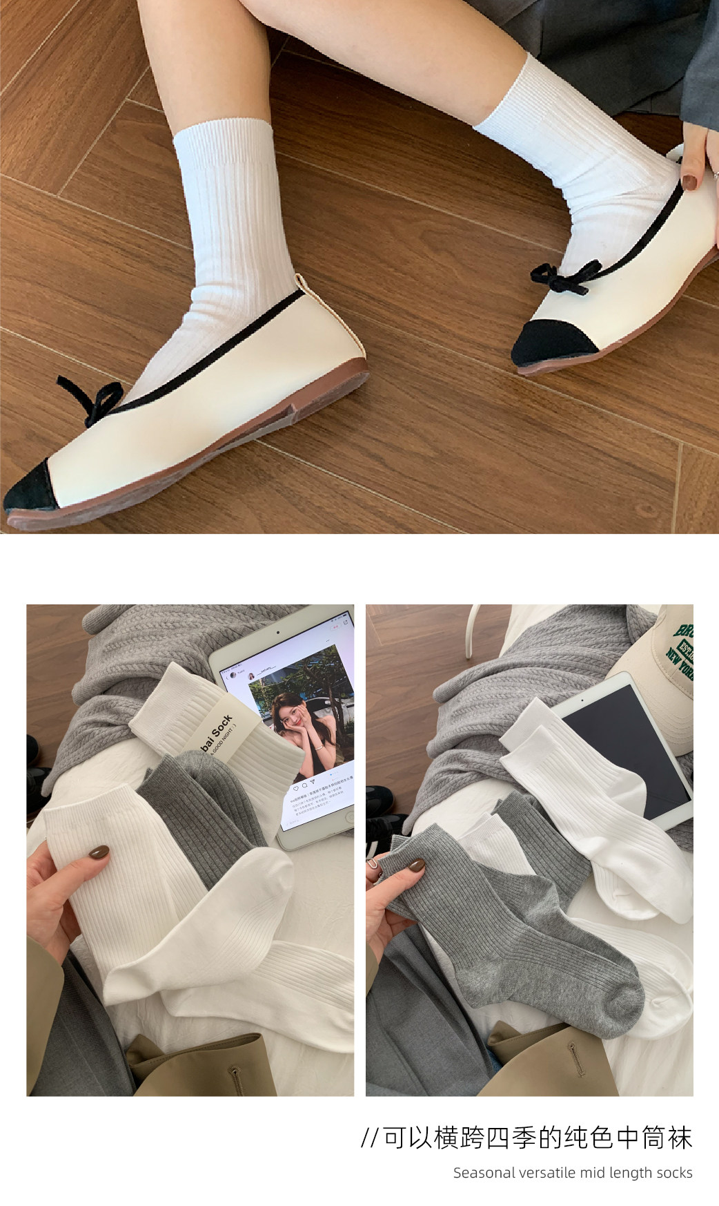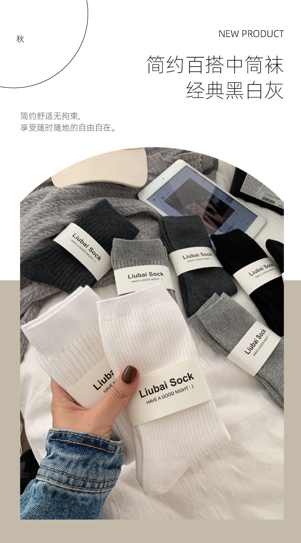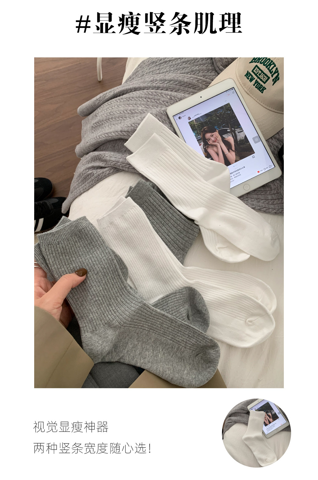 破价秒杀!19.9七双【双针工艺❗️竖条显瘦】白色袜子女秋季中筒袜双针黑白灰纯色竖条纹显瘦女袜。jc