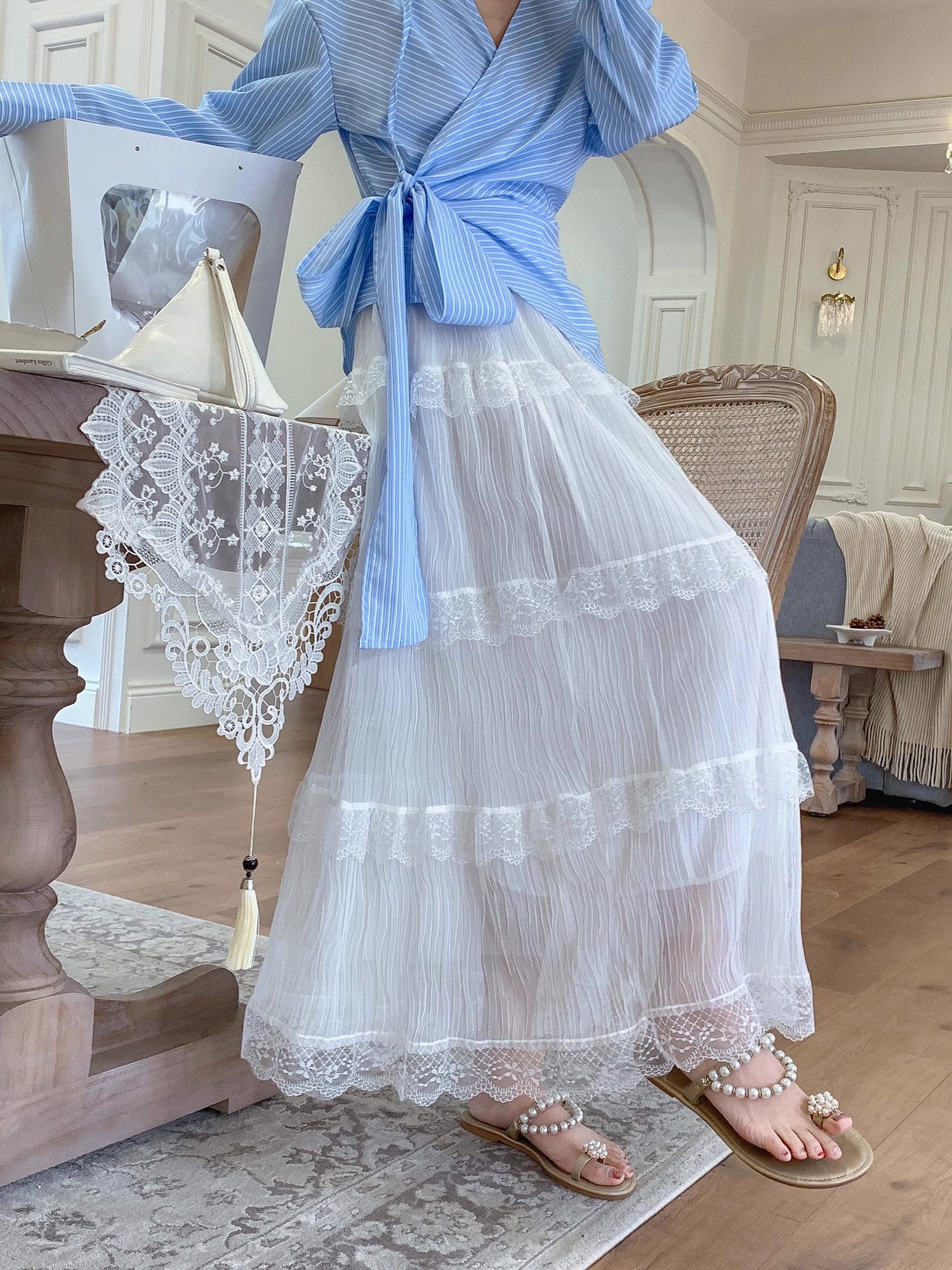 张心子【芭蕾美学】春夏温柔风通勤花边蛋糕裙半身裙 U2503025