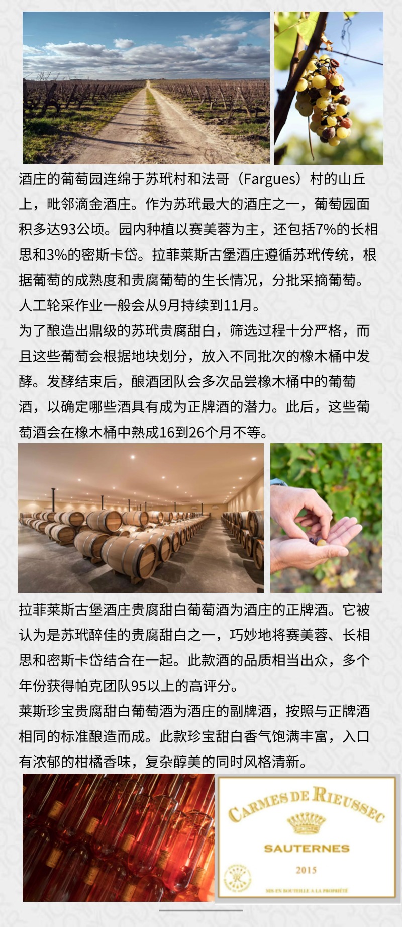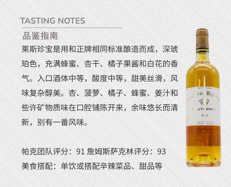 拉菲莱斯珍宝贵腐甜白葡萄酒2015年