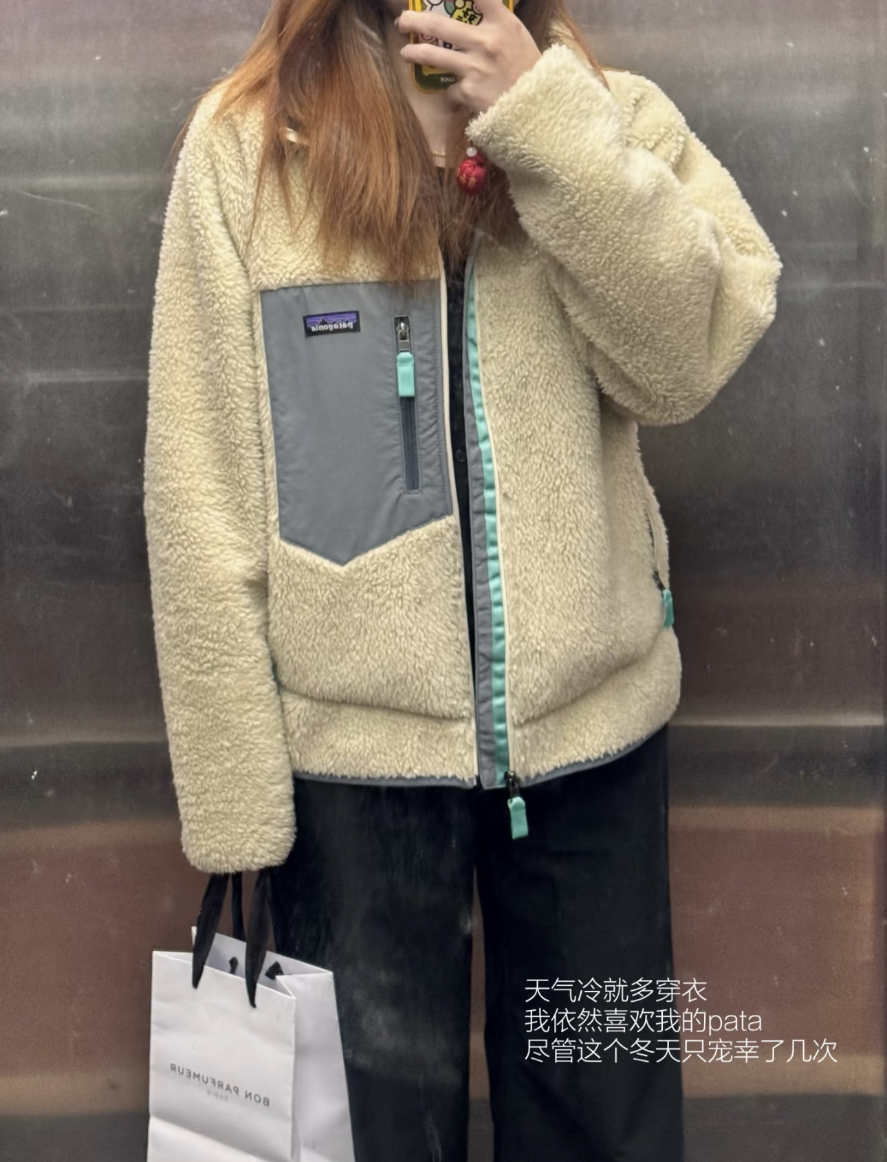 Patagonia经典羊羔绒外套Retro-x,由再生举止抓绒面料制成,经公平贸易认证工艺缝制。面料吸湿排汗,HeiQ Pure 气味控制功能,久穿不臭 Patagonia是第一个最早使用摇粒绒的品牌,直至至今一直被山系风格爱好者所追捧,当然亦是无数品牌「致敬」的对象