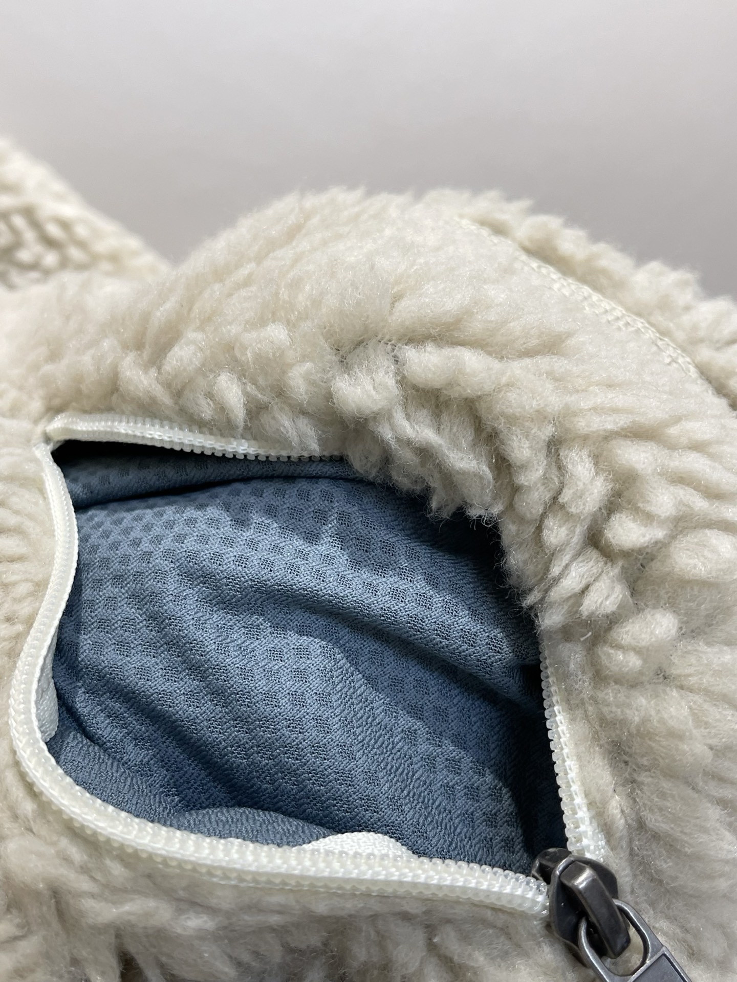 细节欣赏~ 面料采用客供进口订织羊羔绒面料,手感厚实柔软,密度非常高,秋冬更加保暖舒适,一眼区分市面普通货!