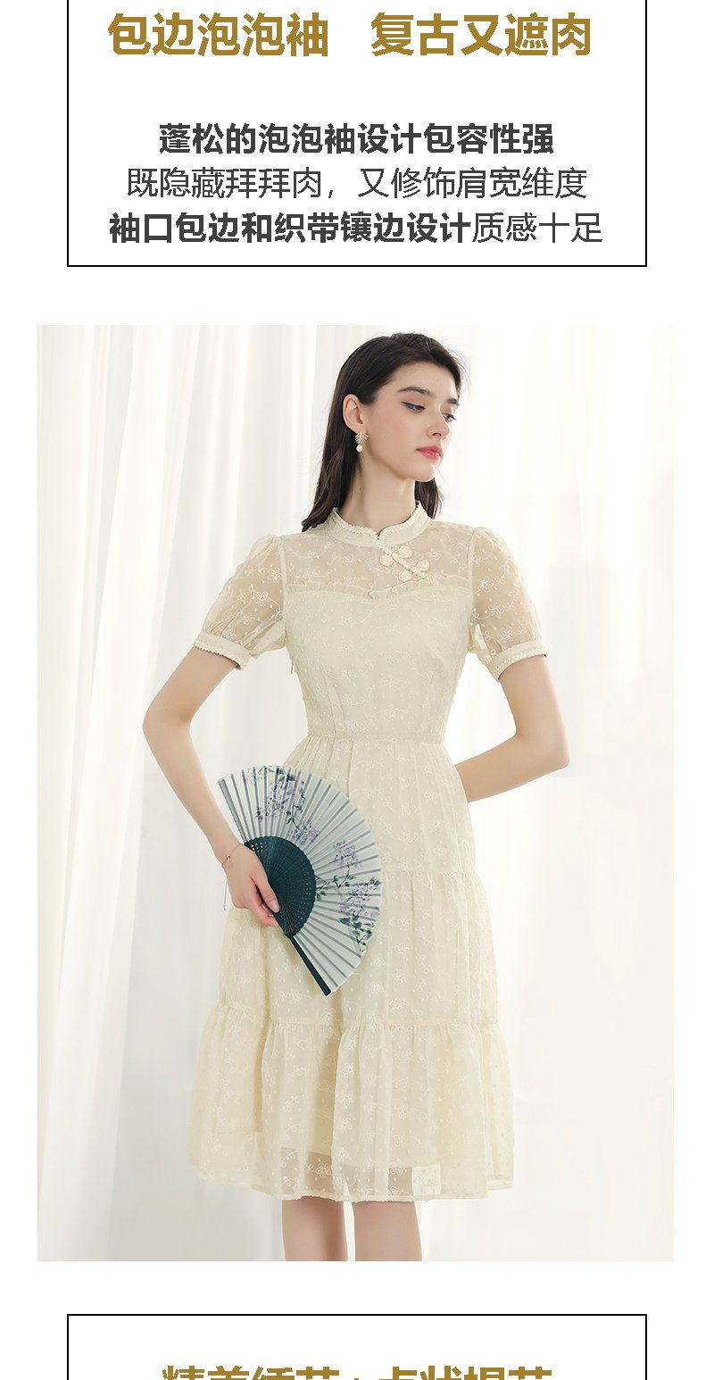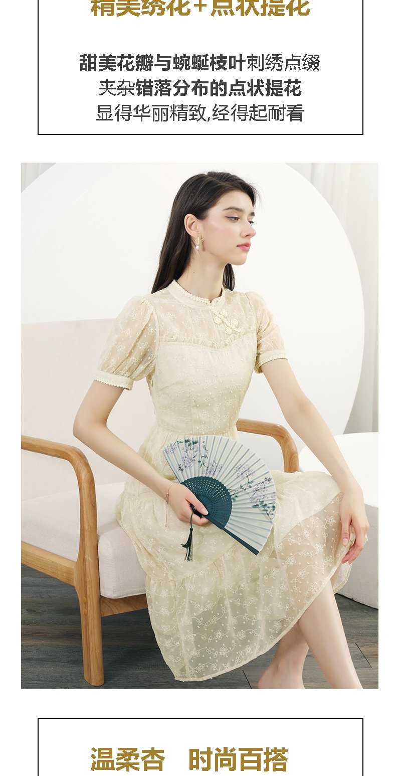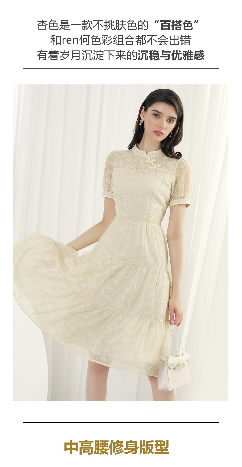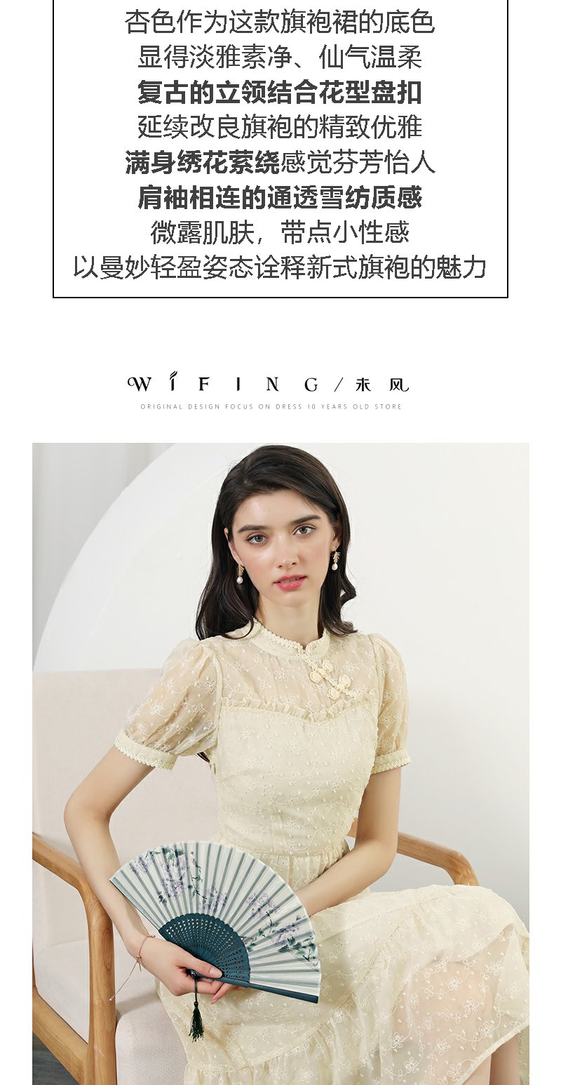 未风杏色雪纺连衣裙女夏2024年夏季新款女装改良旗袍国风短袖裙子