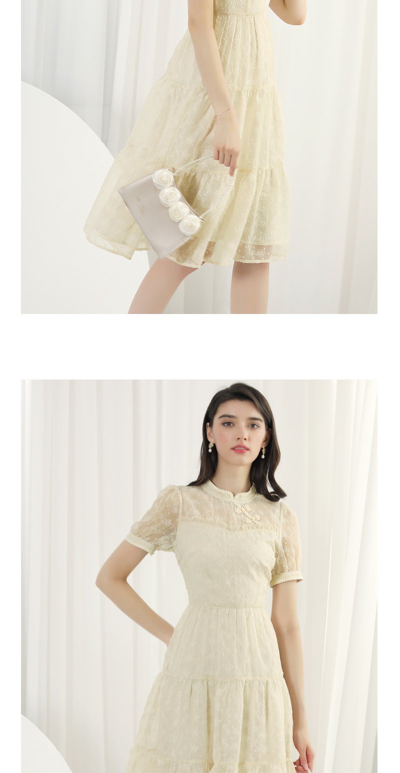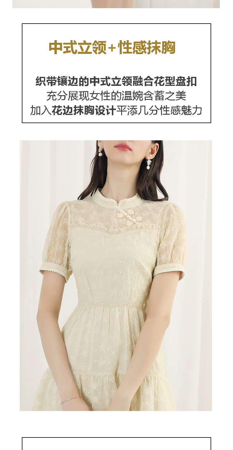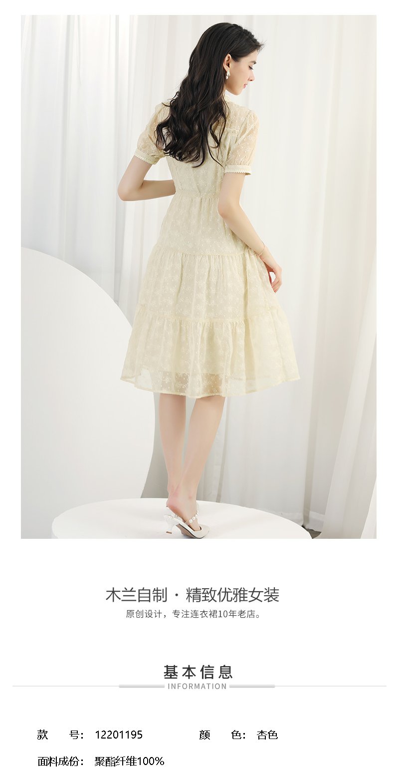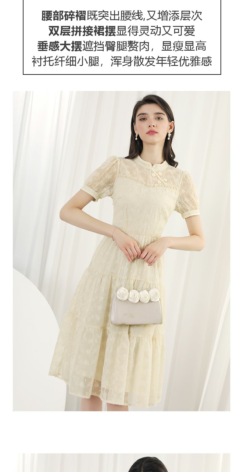 未风杏色雪纺连衣裙女夏2024年夏季新款女装改良旗袍国风短袖裙子
