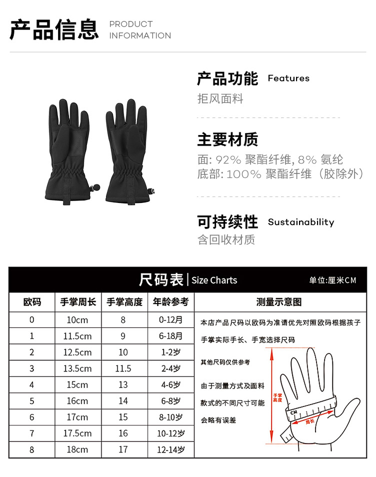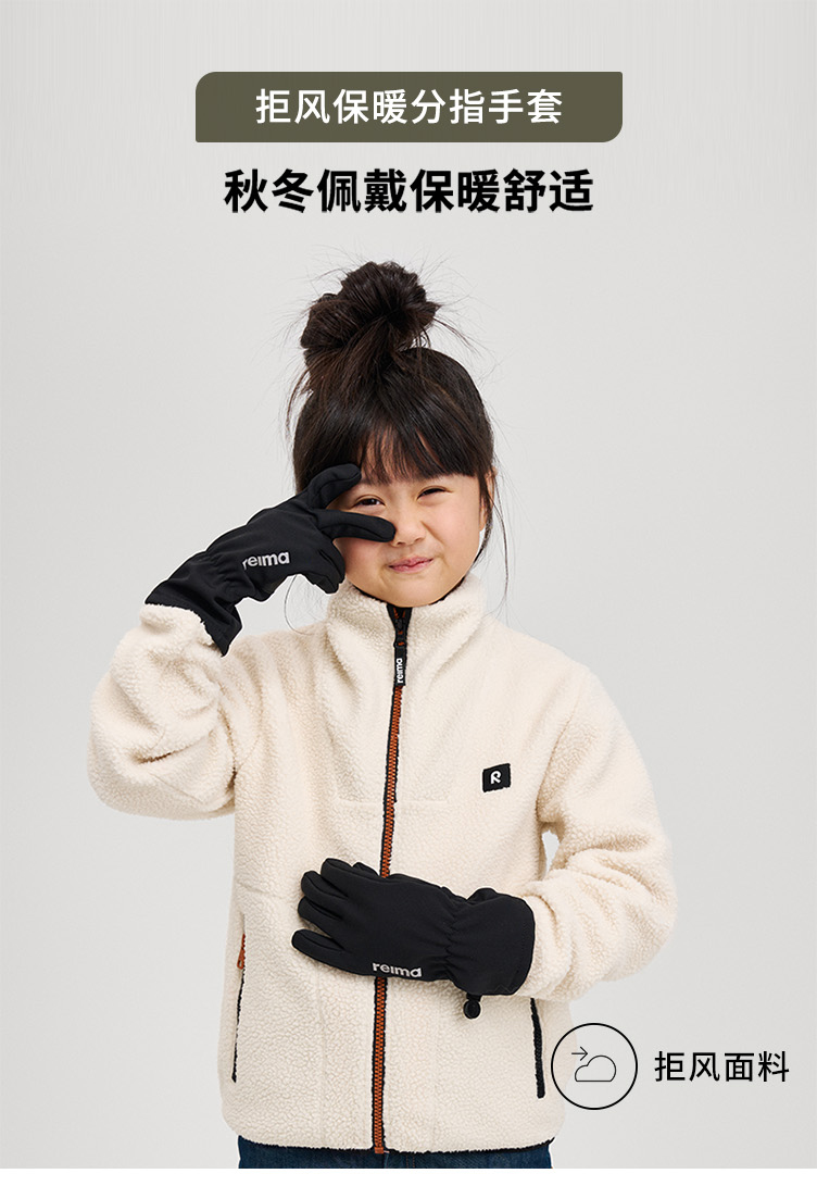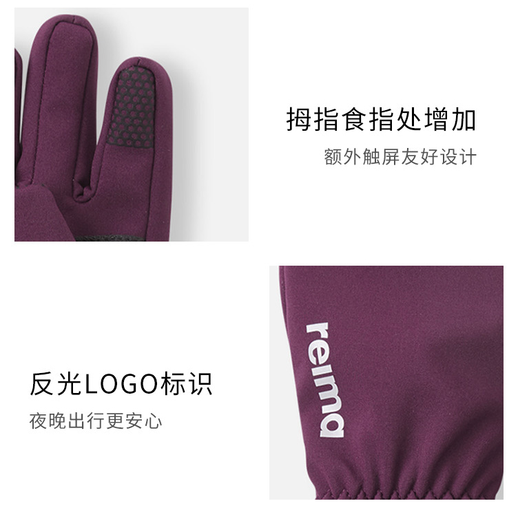芬兰2024年秋冬新款男女儿童中童运动拒风保暖软壳手套
