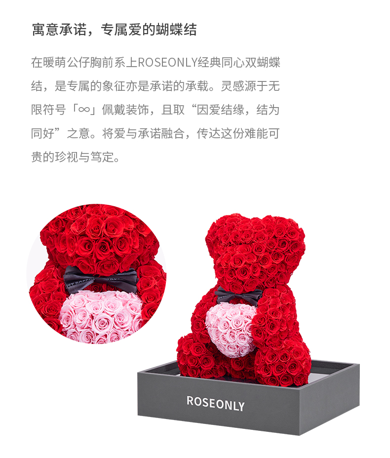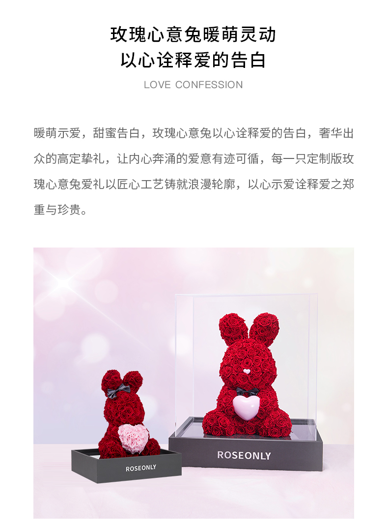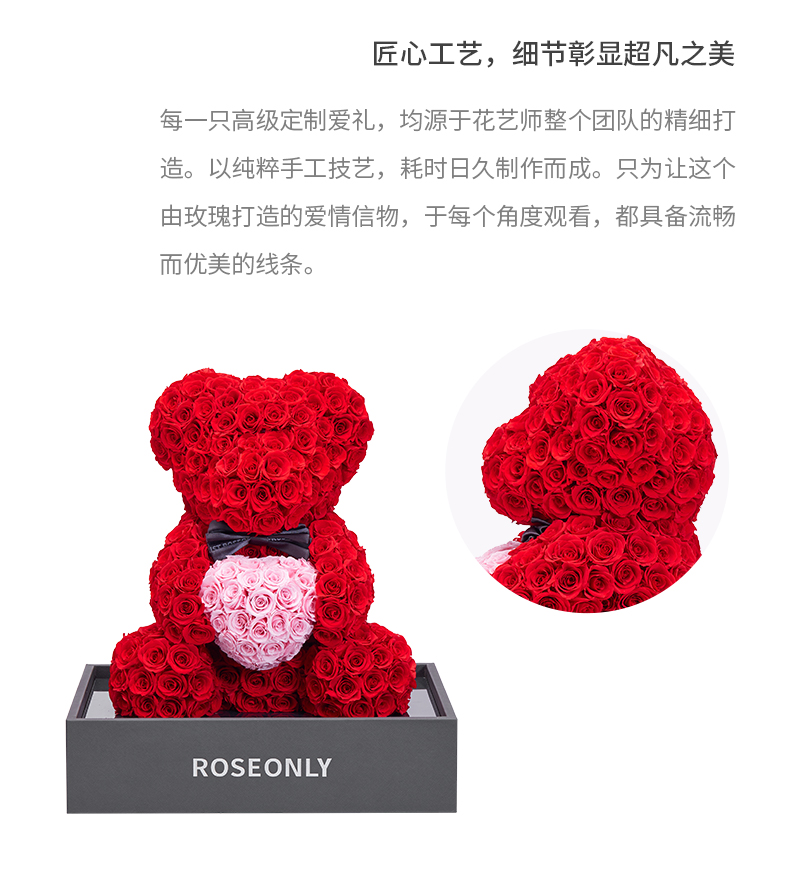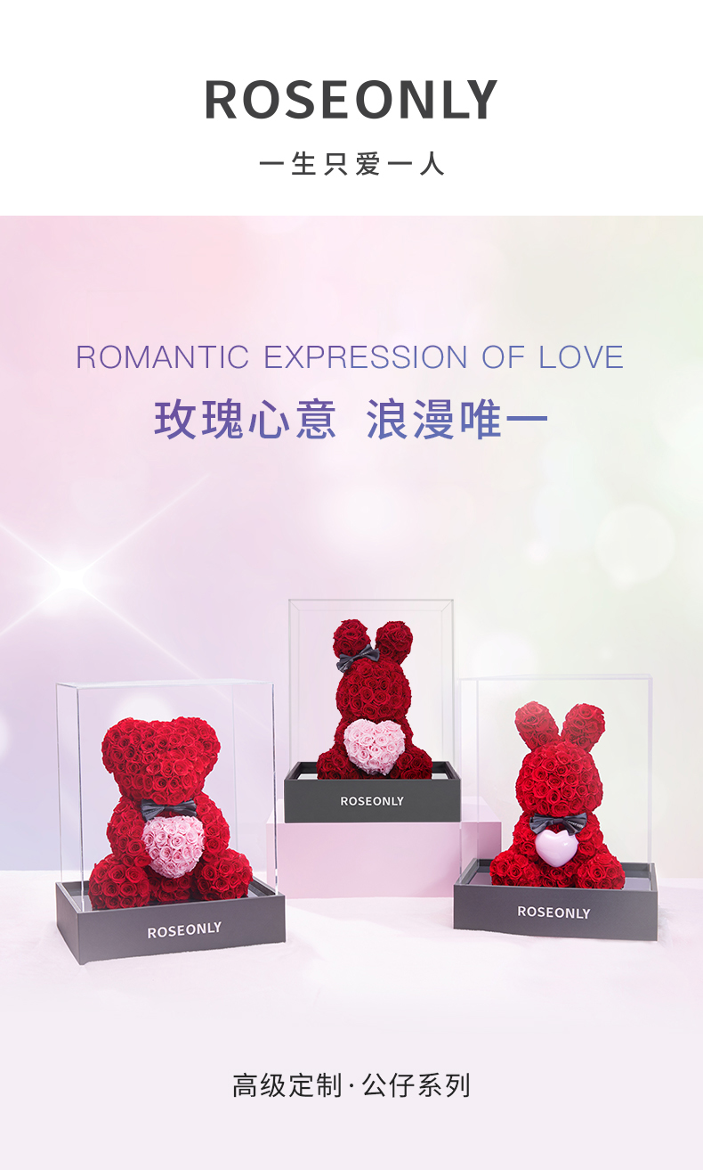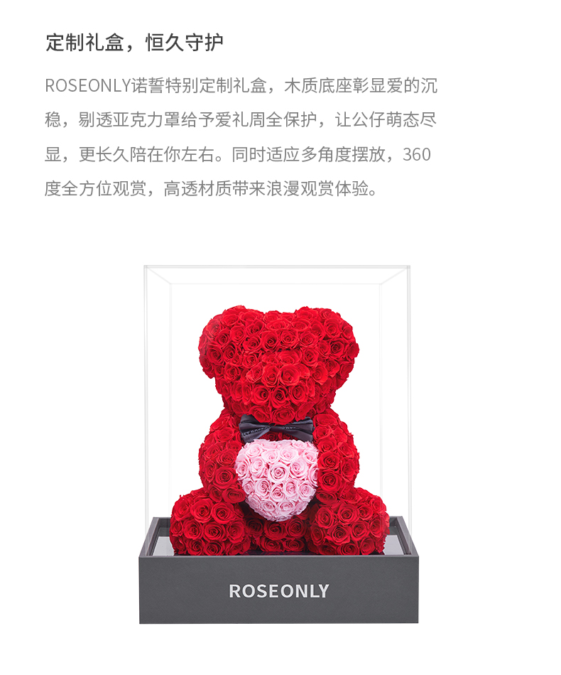 【爱礼告白】ROSEONLY诺誓 高级定制永生玫瑰系列玫瑰心意熊玫瑰心意兔送女友礼物