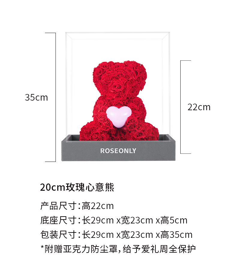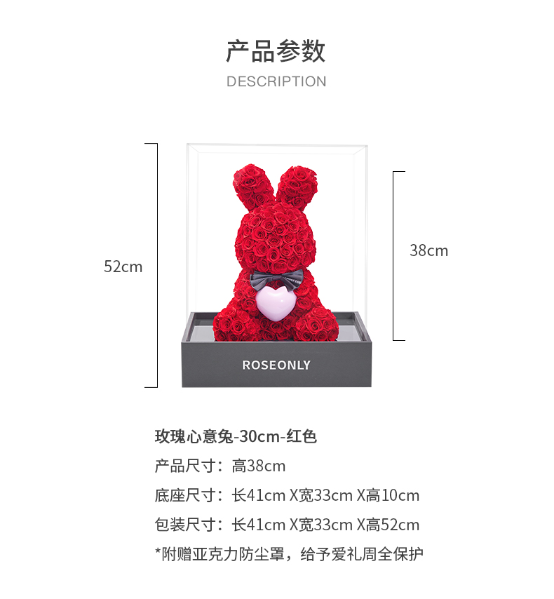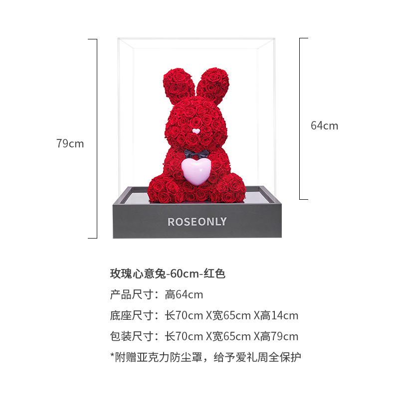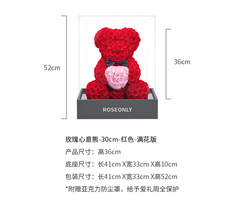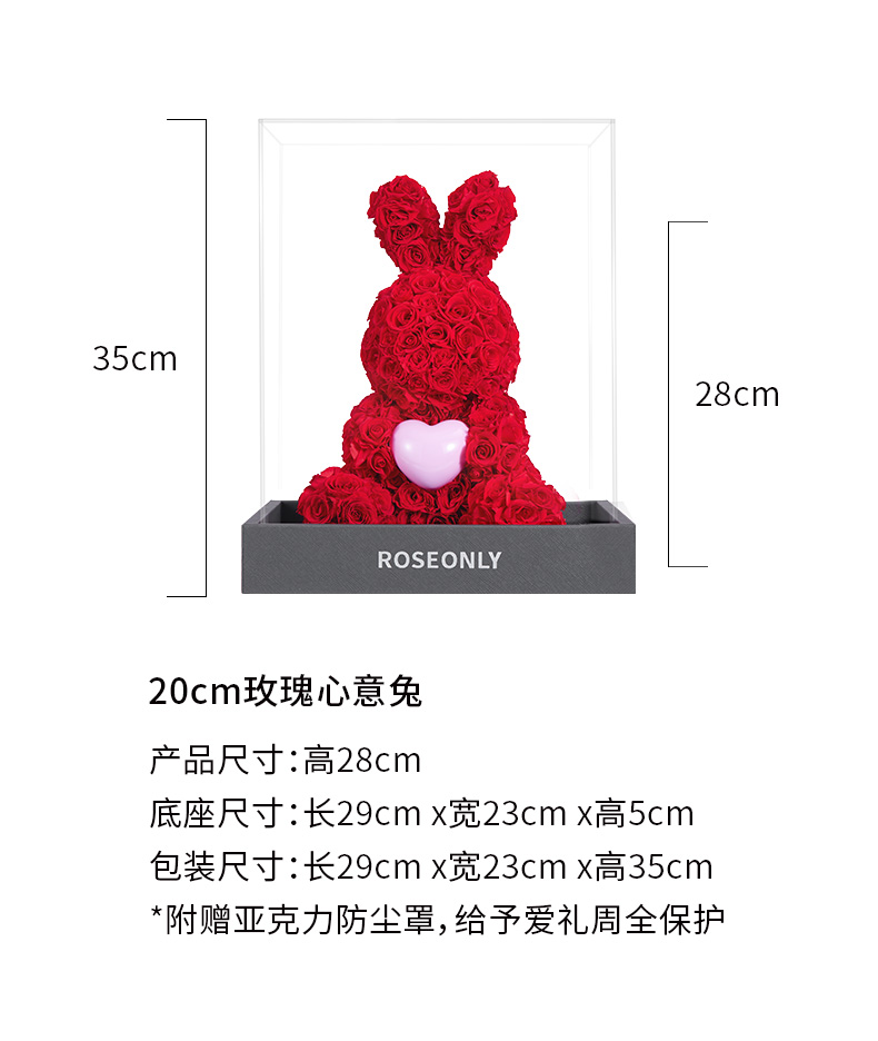 【爱礼告白】ROSEONLY诺誓 高级定制永生玫瑰系列玫瑰心意熊玫瑰心意兔送女友礼物
