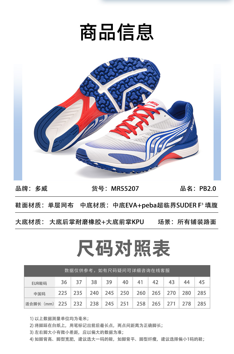 多威PB2.0跑步鞋男新款马拉松鞋女网布透气减震运动鞋MR55207