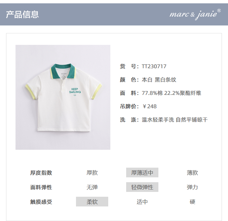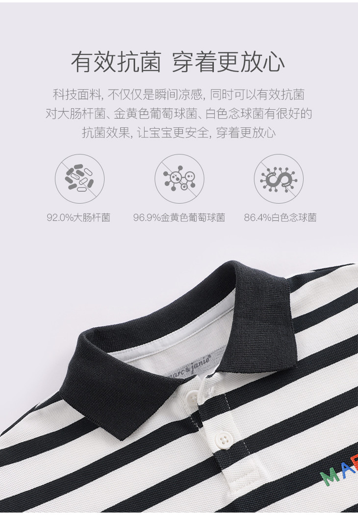 【科技凉感抗菌面料】马克珍妮夏装 男童条纹POLO衫230717