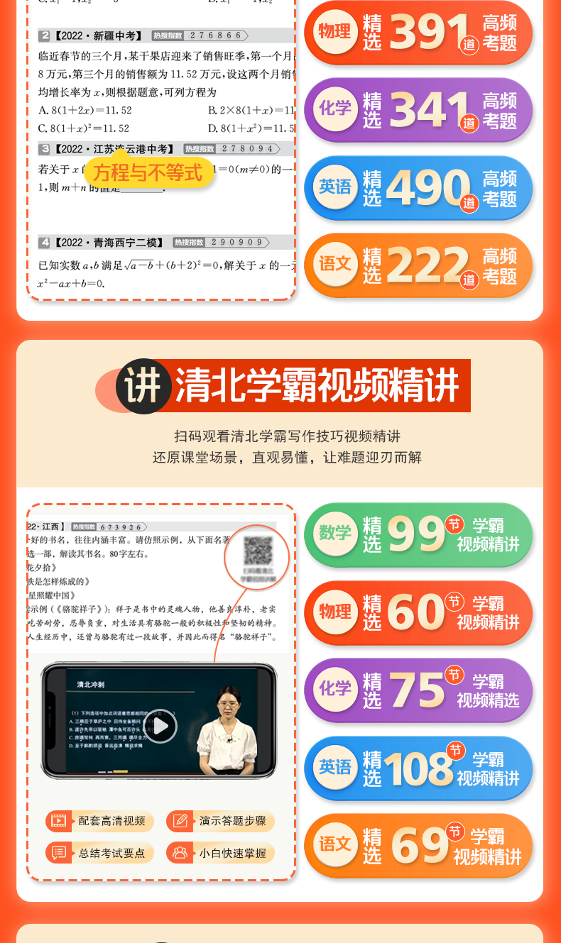 【12-18岁】《闻道清北:视频讲透中高考热搜题》全10册 初中+高中热门教辅,全国通用,适用于初中一年级至高中三年级备战中高考!