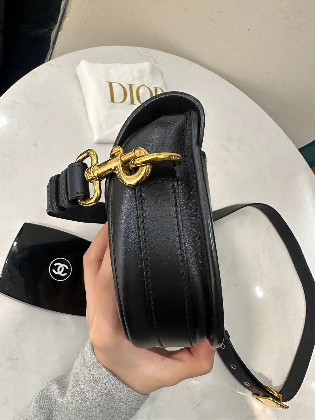 【商品详情】正品二手 Dior 小号 黑金 box牛 马鞍 斜挎包🏹93新 18×14 配件:肩带 防尘袋。包面和金属正常使用感。复古常青款 永不过时还保值