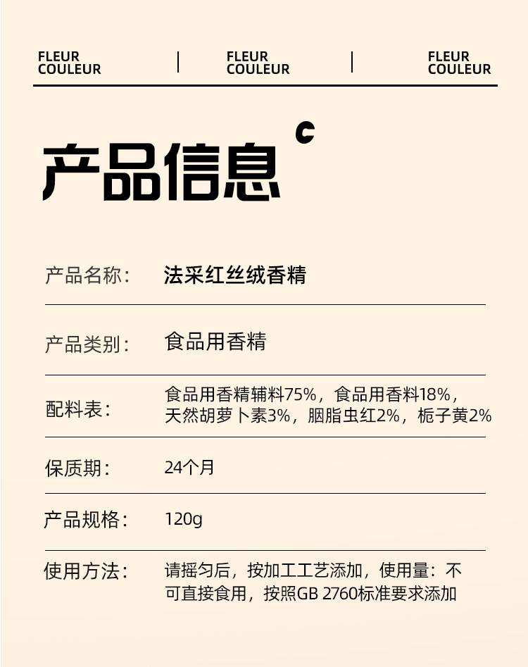 120g fc法采 红丝绒香精 烘焙可食用色素 天然精华液红色蛋糕液食品级香精