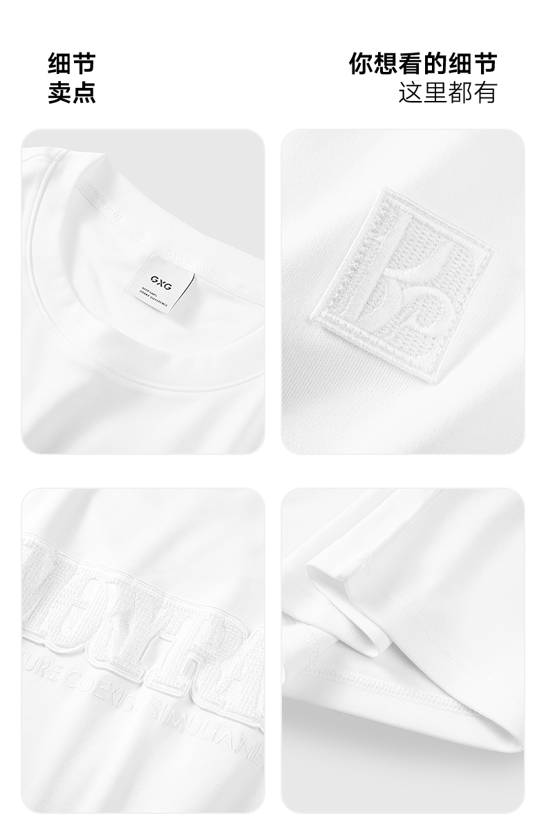 GXG男装 圆领T恤双色刺绣短袖针织上衣 2025春季热卖