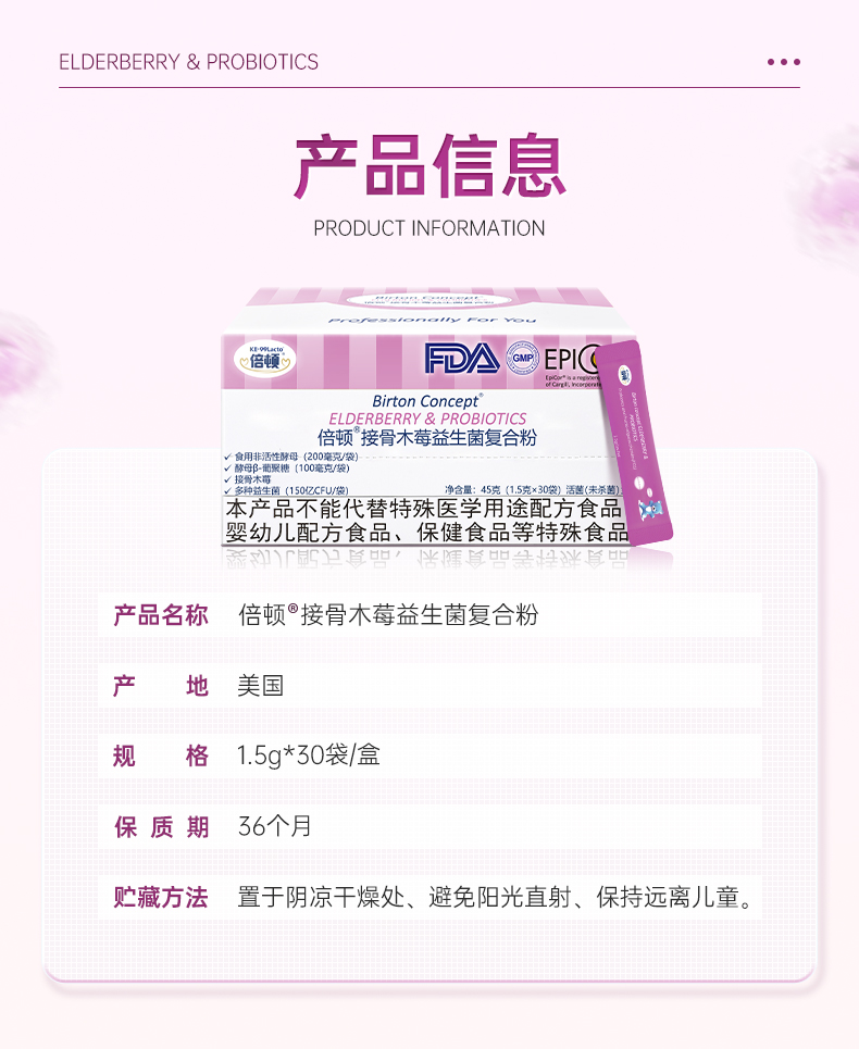 倍顿接骨木莓益生菌复合粉45克(1.5克*30袋)