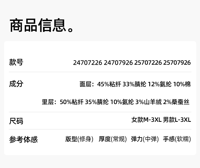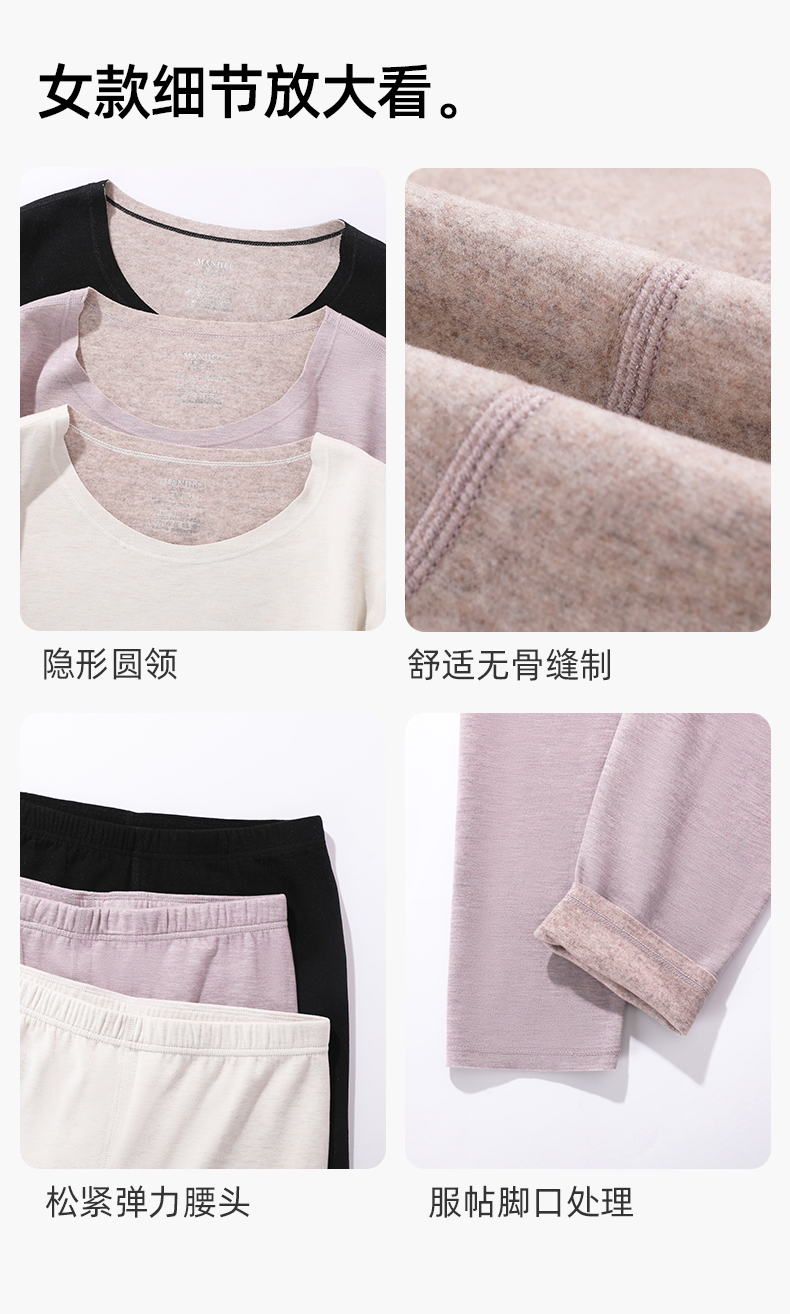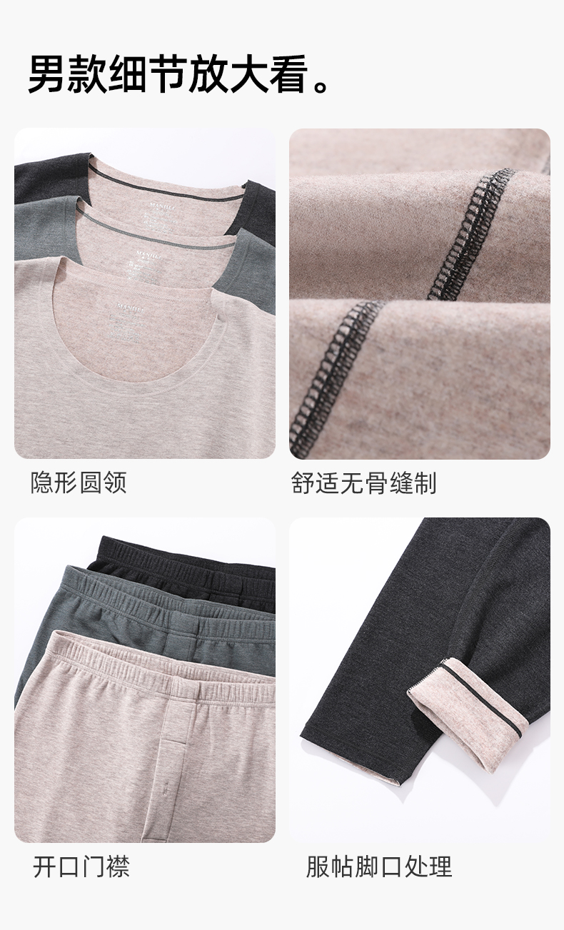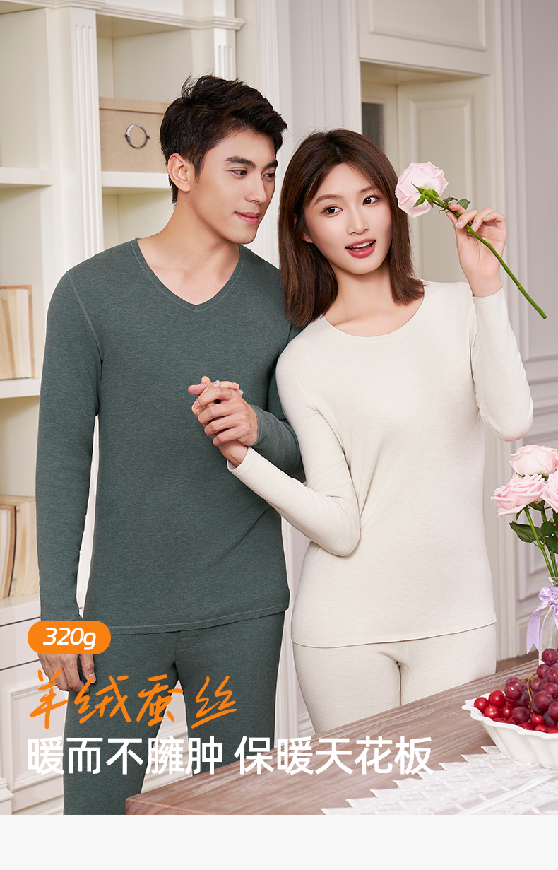 【羊毛蚕丝圆领】熳洁儿 320G加厚保暖圆领套装情侣款商场同款25707226/25707926