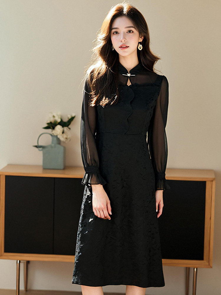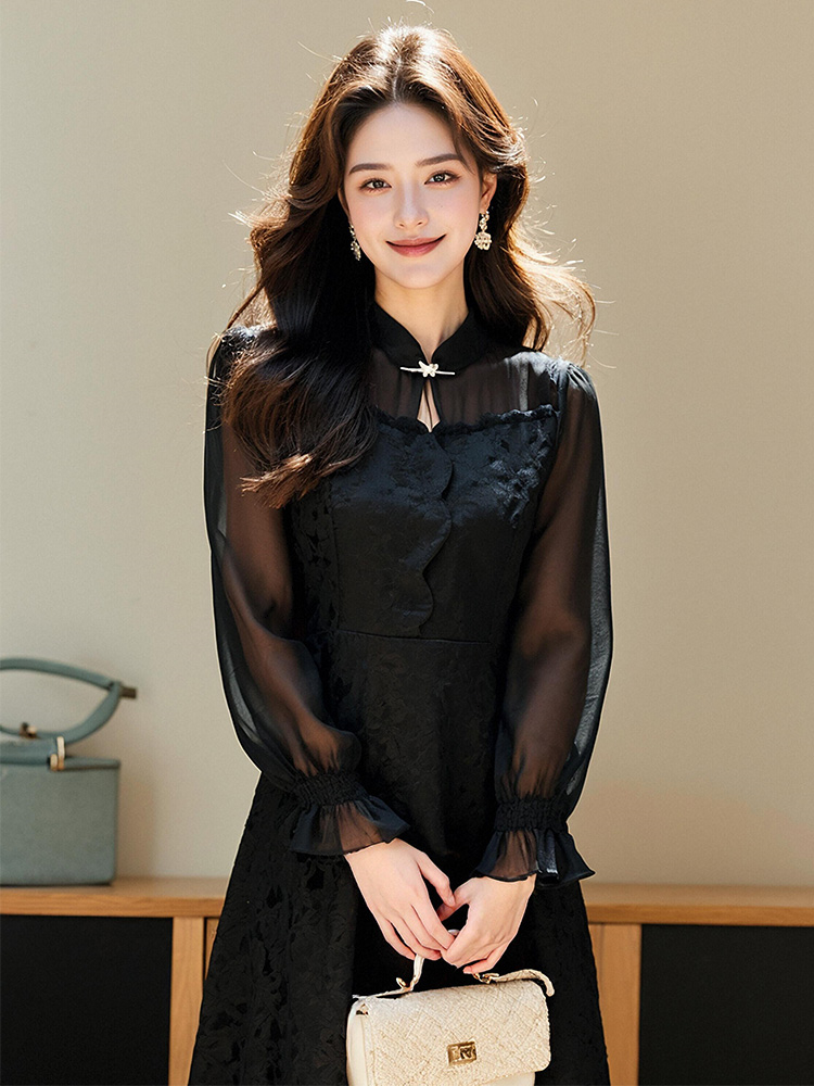 奢姿2025年春季新款大码女装气质优雅立领连衣裙遮肚藏肉裙子9951857172