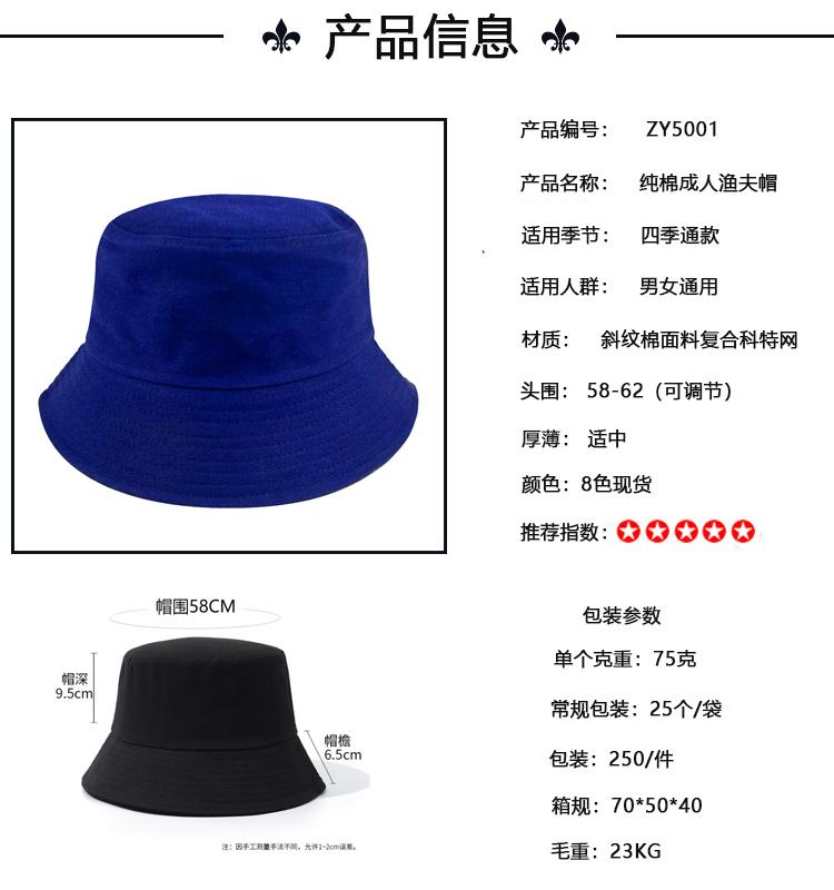 百搭防晒成人纯棉渔夫帽盆帽子5001
