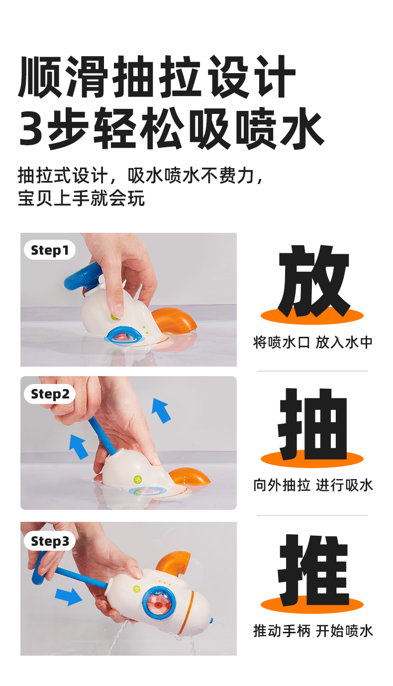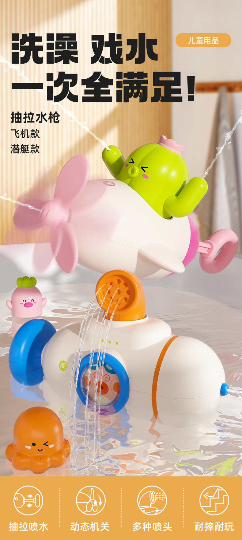 mideer弥鹿水枪玩具儿童呲滋水抽拉式戏水水枪男女宝宝洗澡玩具
