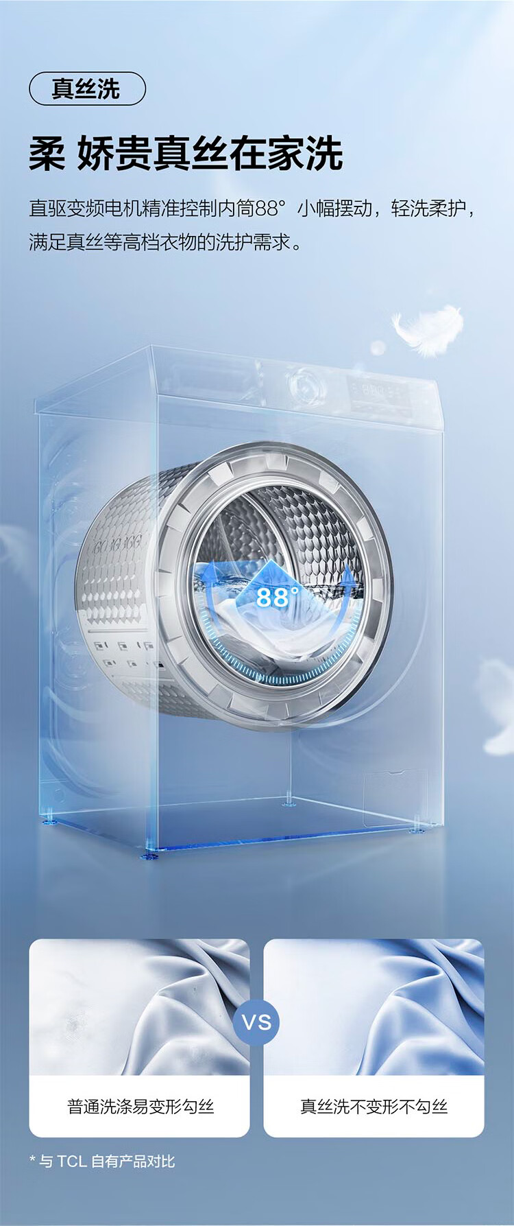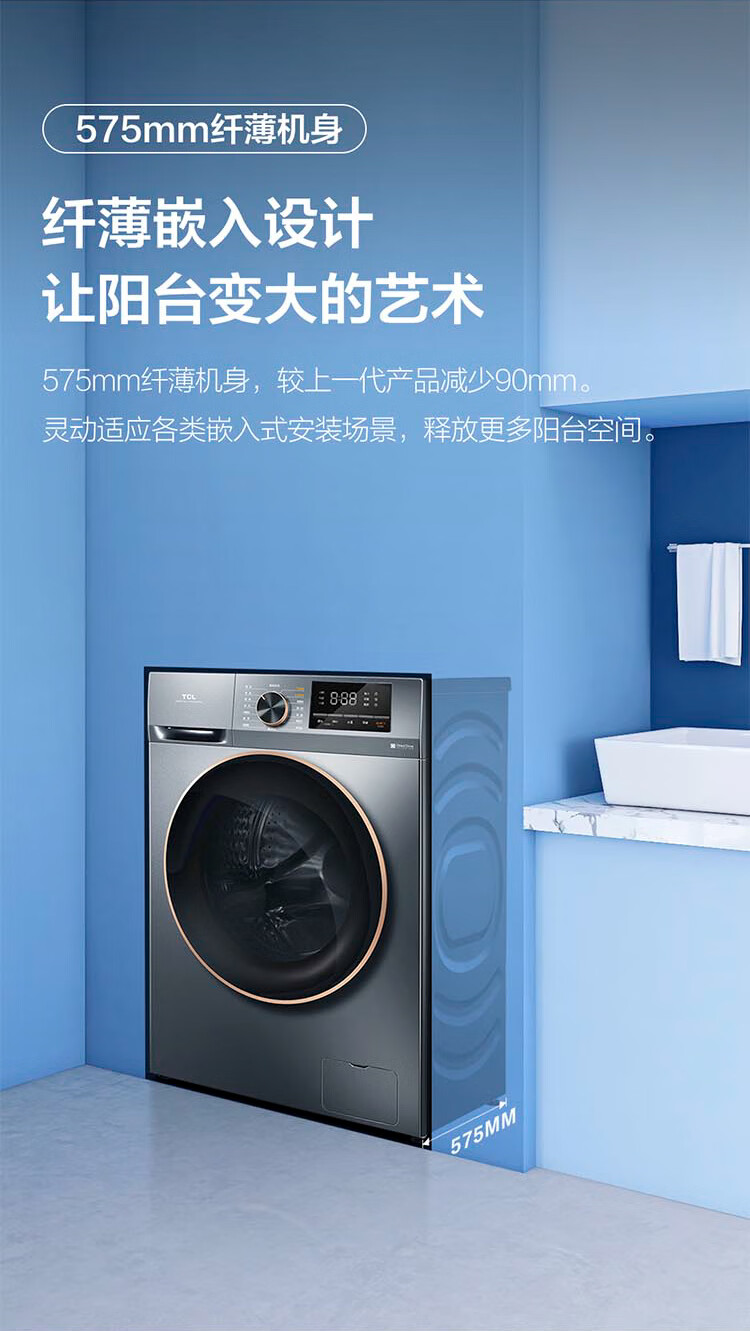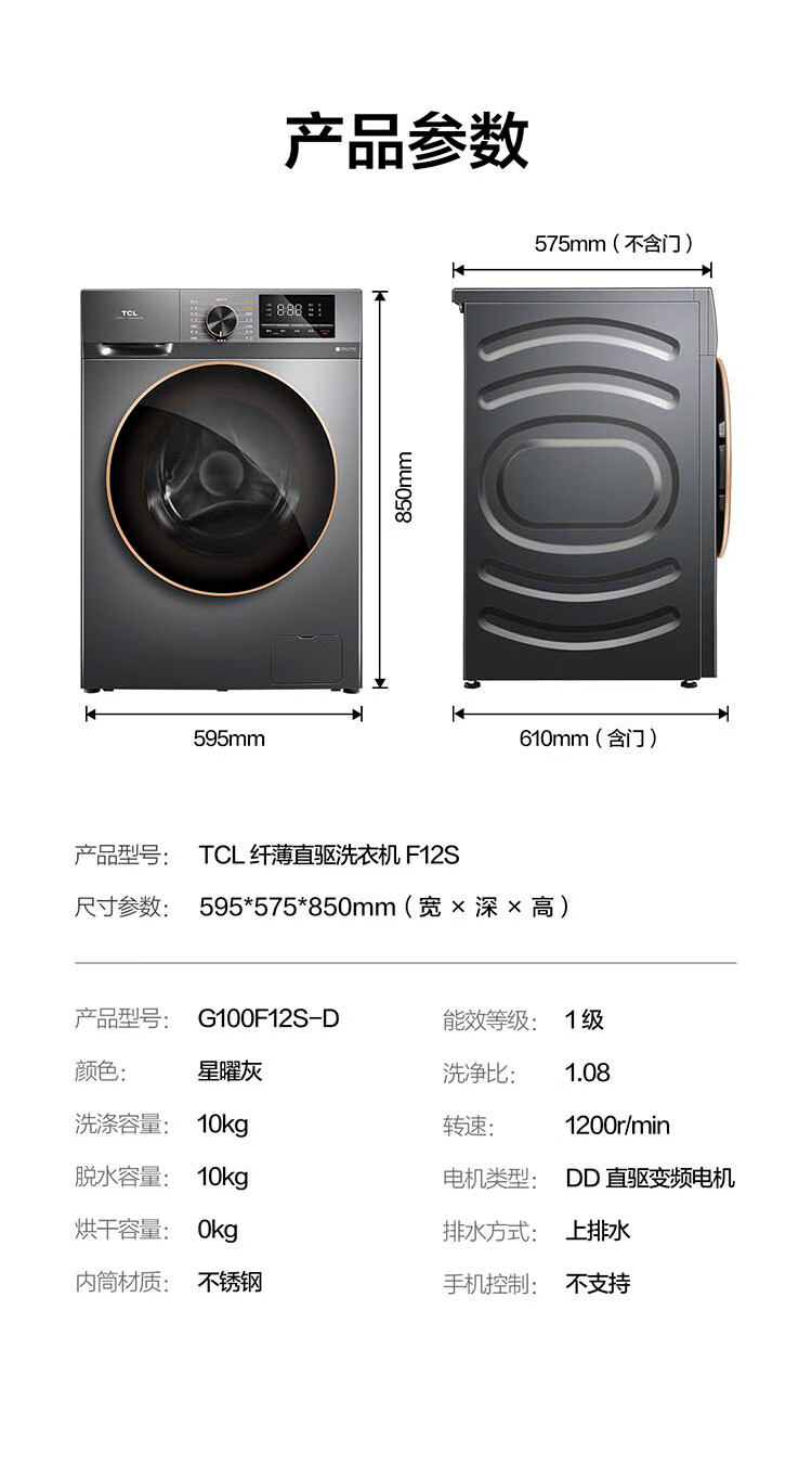 TCL G100F12S-D 10KG 滚筒 变频 一级能效 嵌入式 不锈钢内筒 箱体材料:渗锌钢板 星耀灰