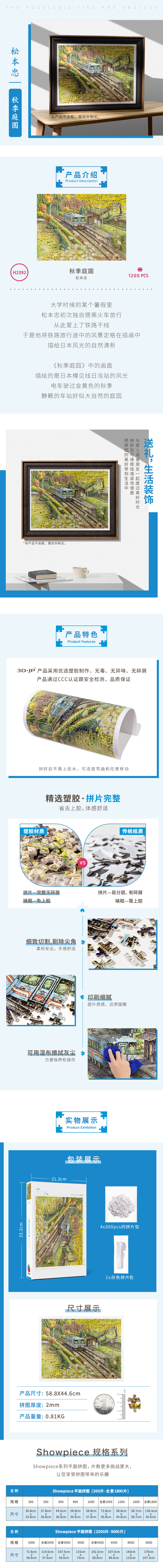 【折扣商品 不退不换】1200片 平面拼图 塑料拼图 H2392 松本忠- 秋季庭院