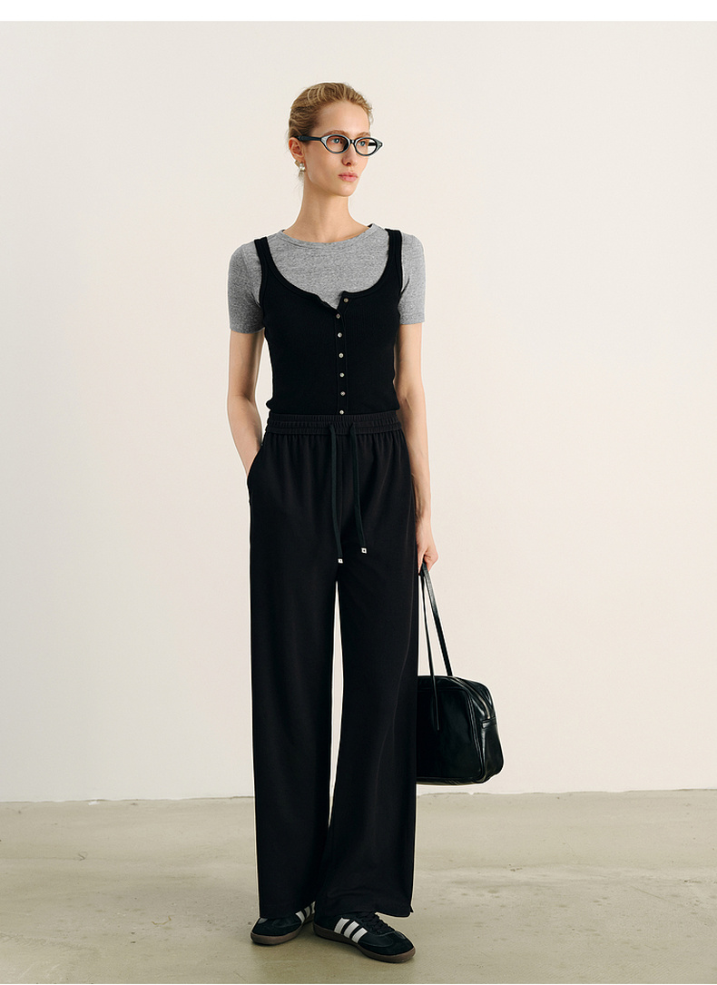 【商场同款】诗凡黎藏青高腰直筒休闲裤2025春新款长裤3G1150301