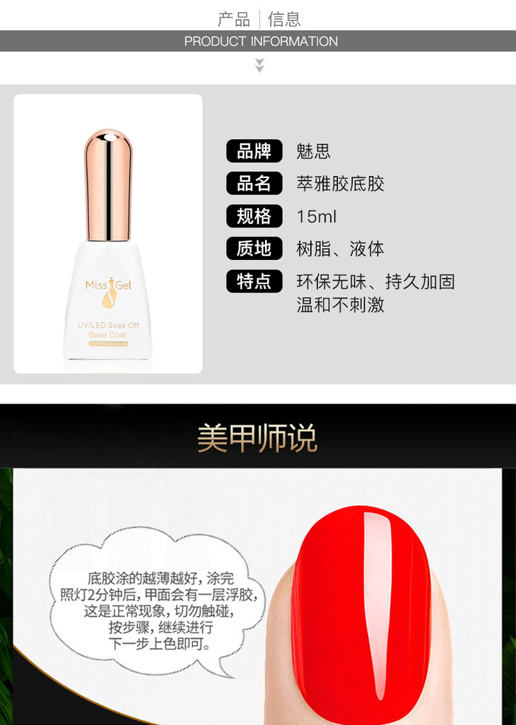 魅思(索芙娜) 6瓶套餐A级牢固底胶3瓶15ml+A级免洗封层3瓶15ml(底胶,封层瓶数可以自选备注)