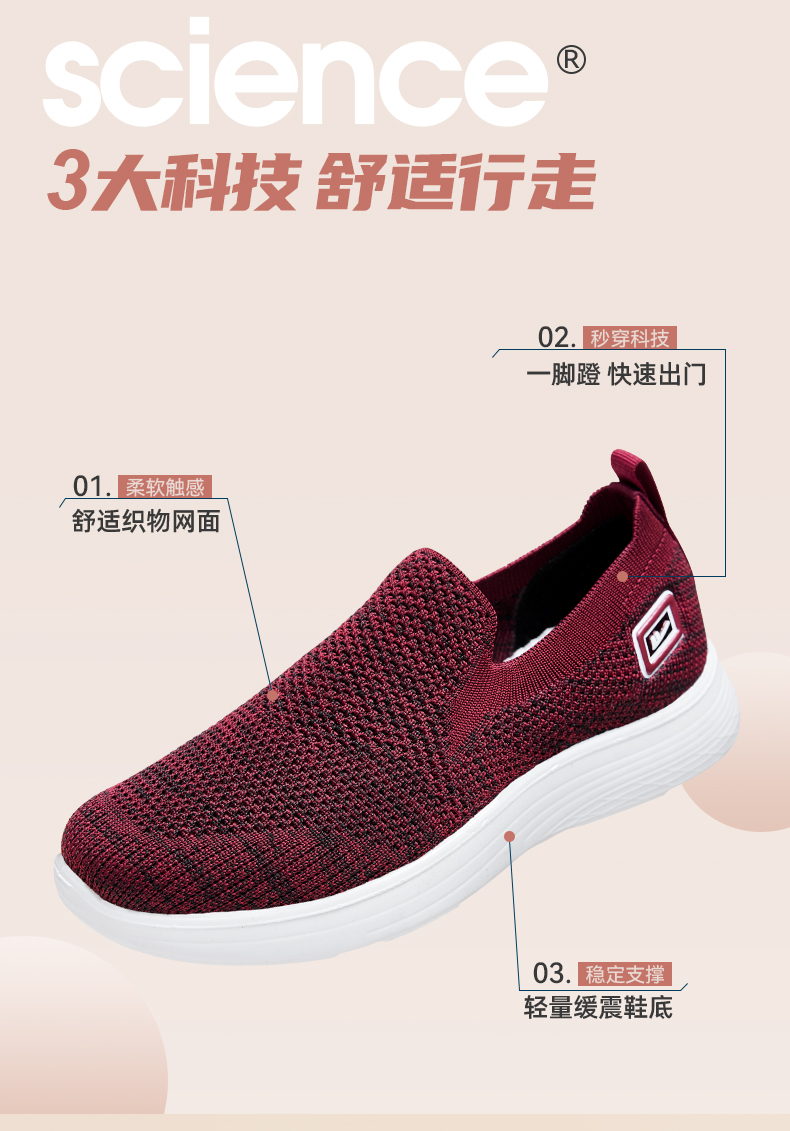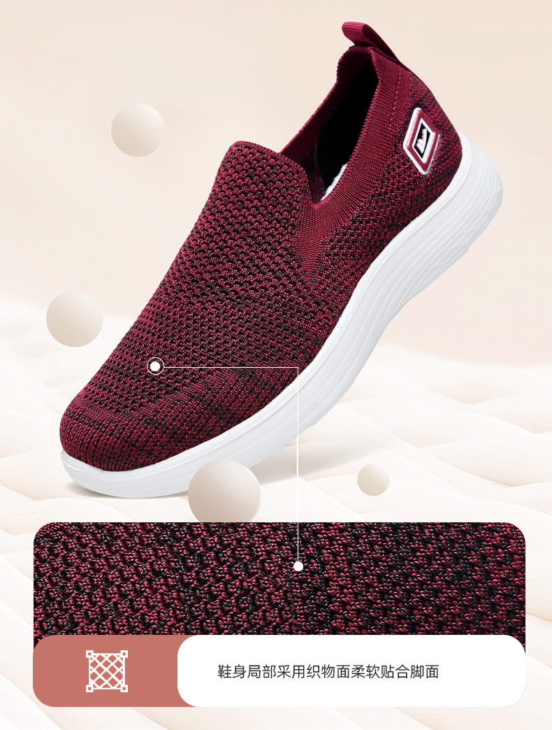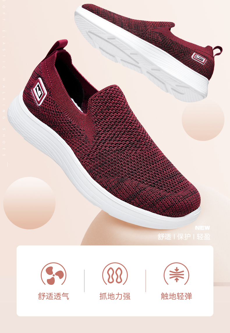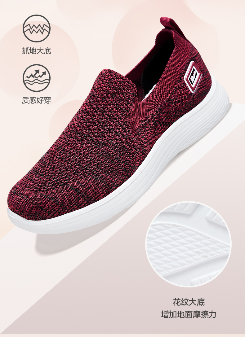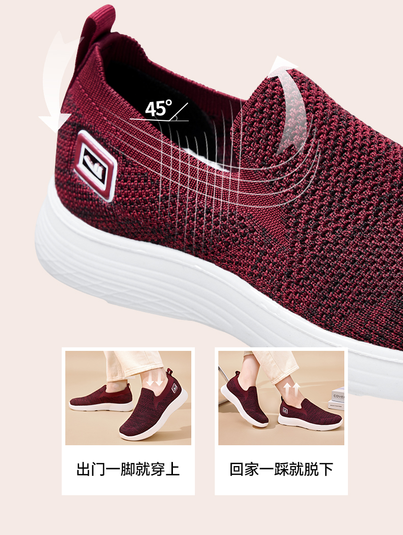 回力老人鞋女秋季中老年网面鞋软底老北京布鞋一脚蹬运动鞋妈妈鞋