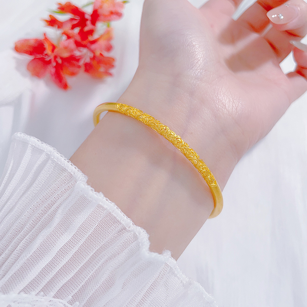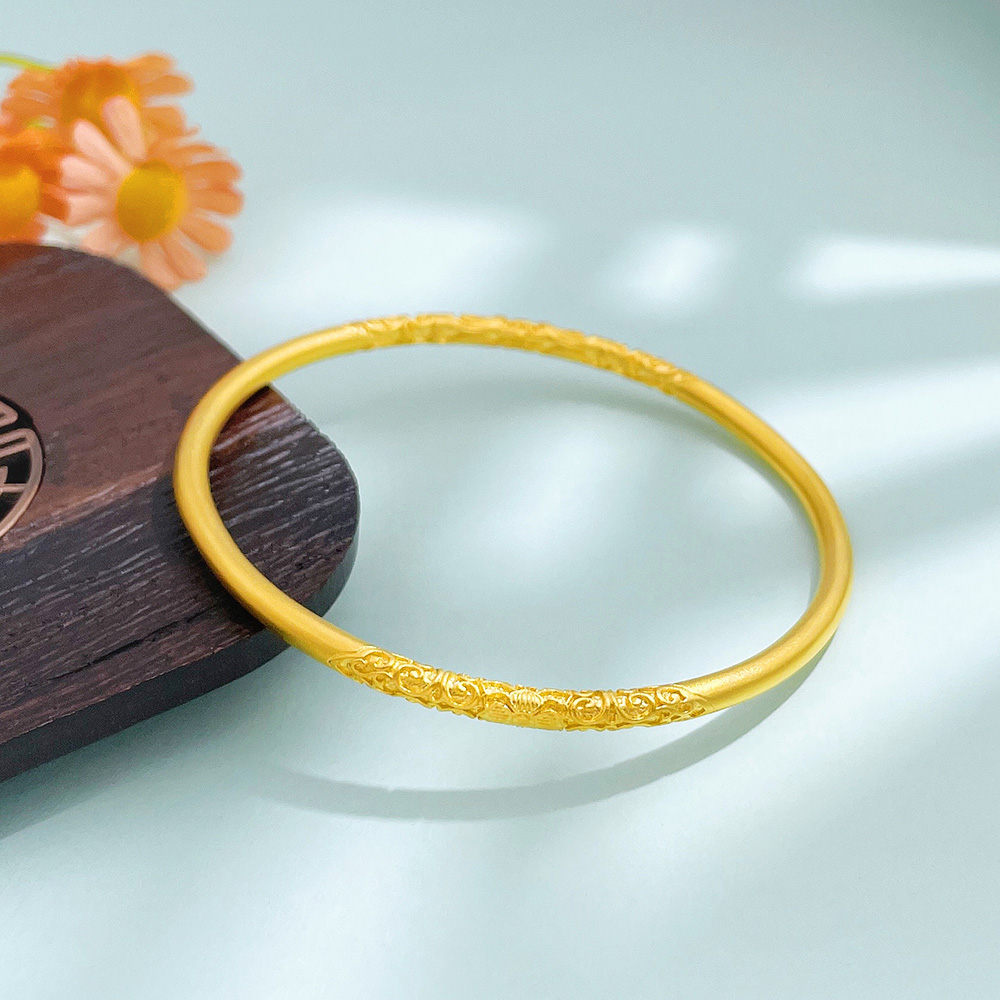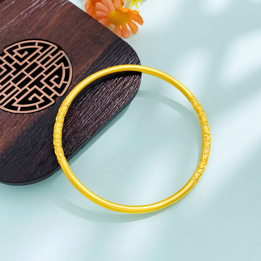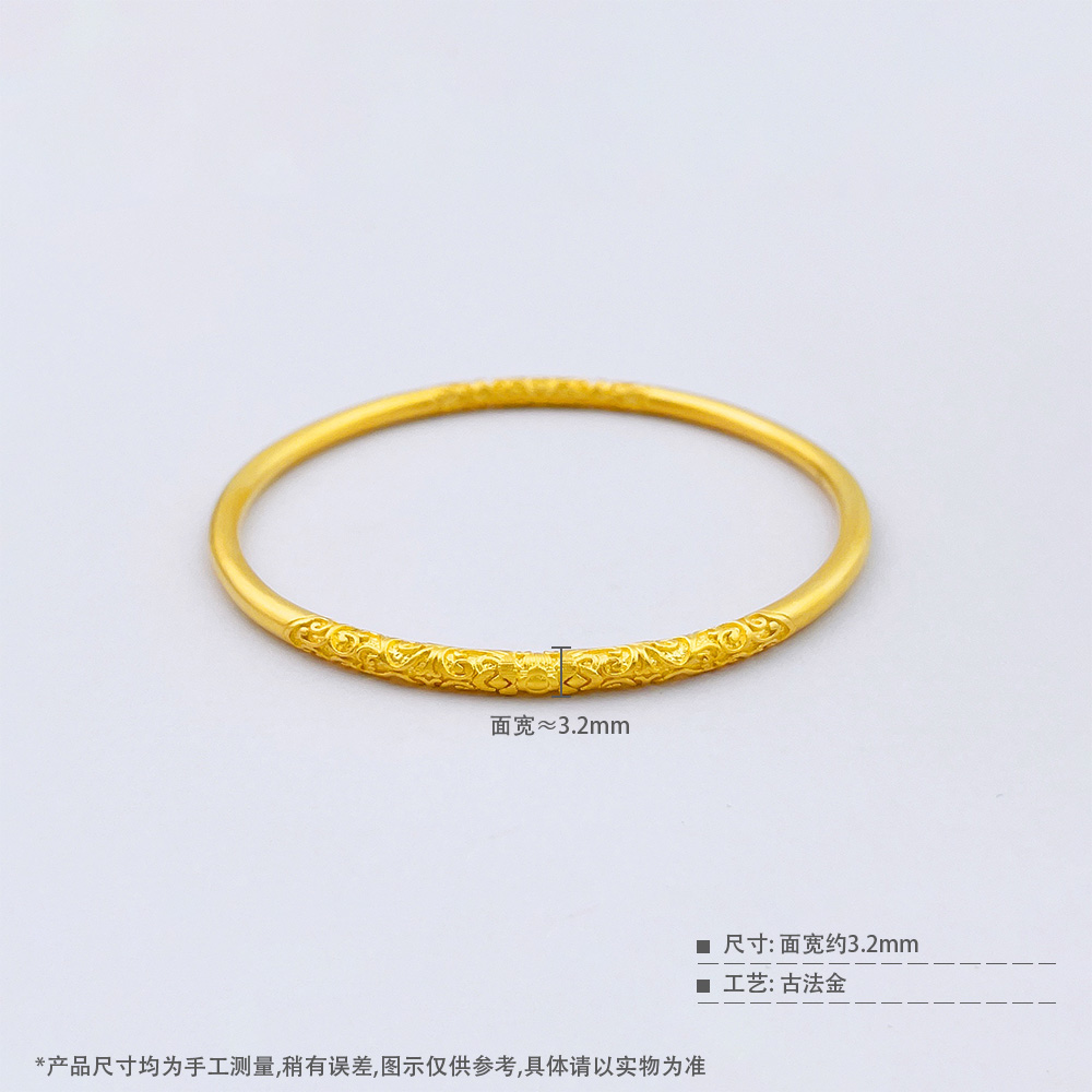 【限时克减150元】足金999 #复古风 古法实心固口卷草纹圆管手镯(面宽约3-3.4mm)(AUQGFSZ00029-2))预售产品下单后不退款不退货不换货不补差价