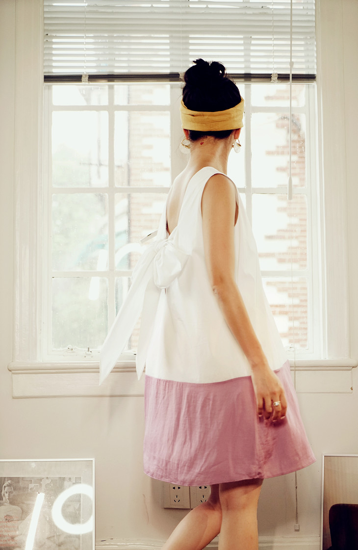 AtelierMissLu / Betty 白紫拼色蝴蝶结连身裙