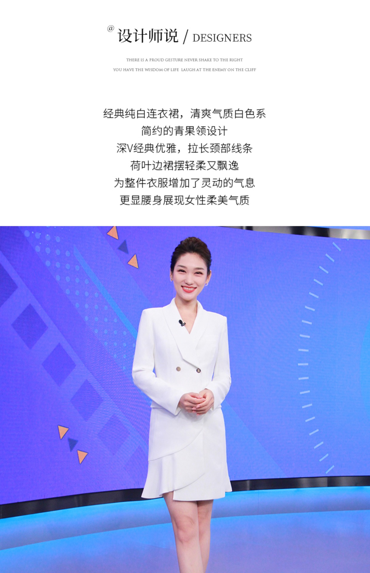 IWY/白色主持人连衣裙女秋季时尚艺考礼服正装职业裙气质演讲比赛服装Q10359
