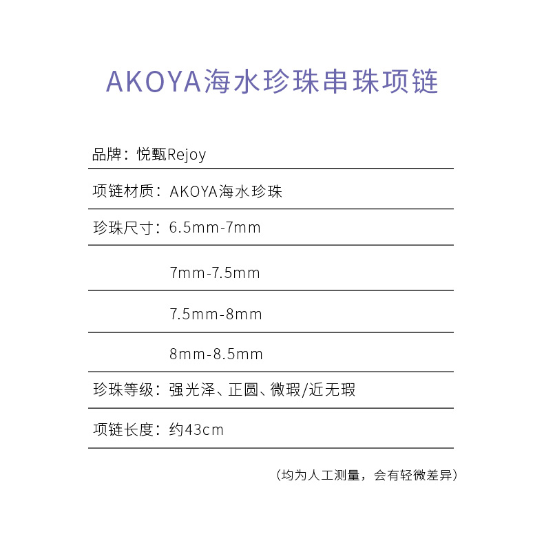 悦甄日本AKOYA海水珍珠串项链女锁骨链强光正圆珍珠送女友