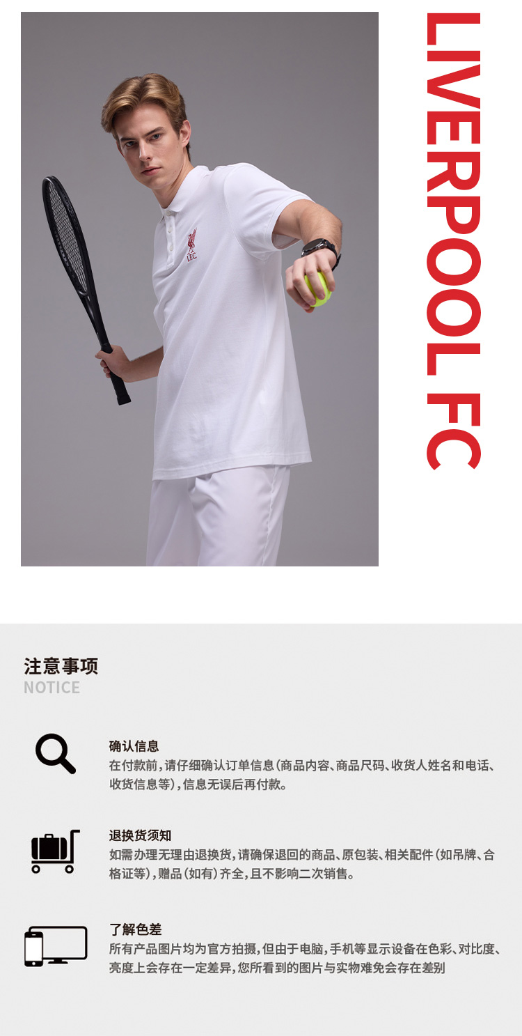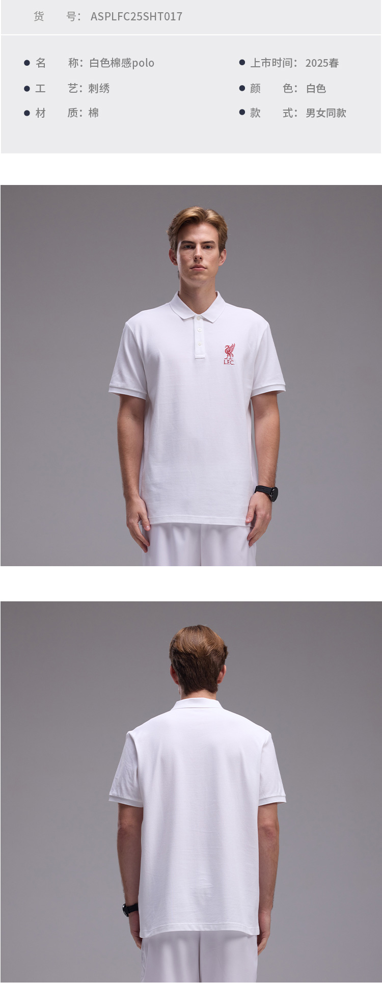 【官方正版】利物浦俱乐部 | 春夏新款白色棉感polo柔软舒适短袖清爽简约