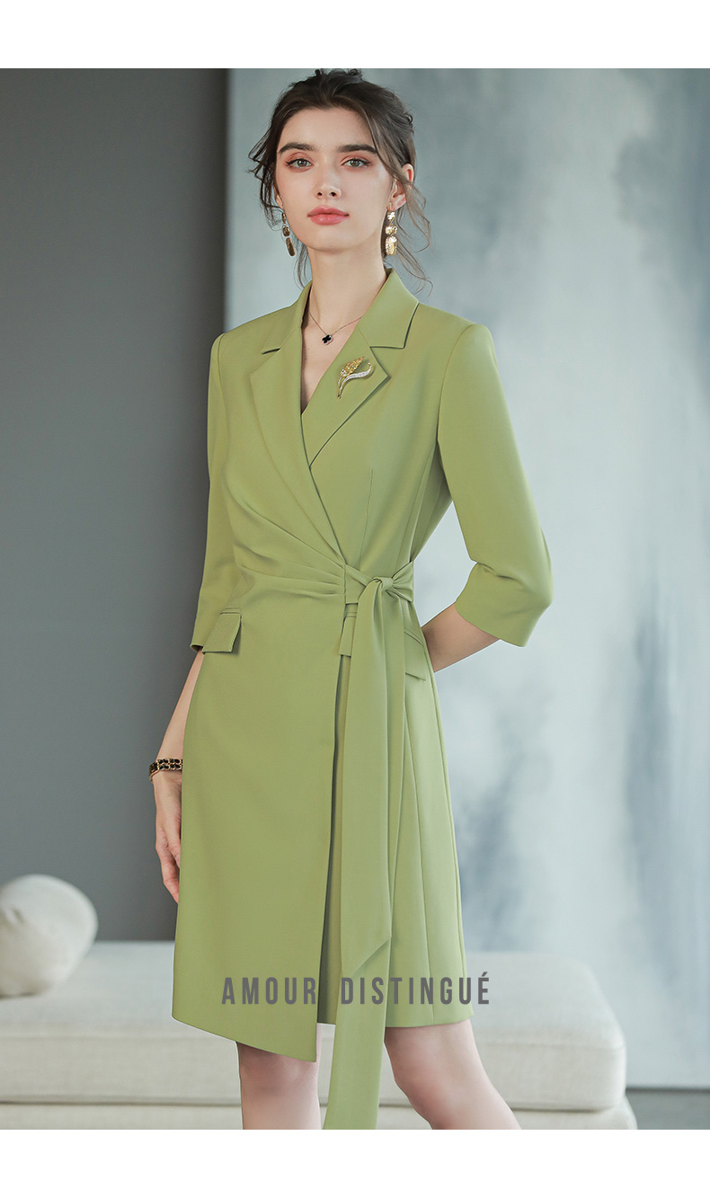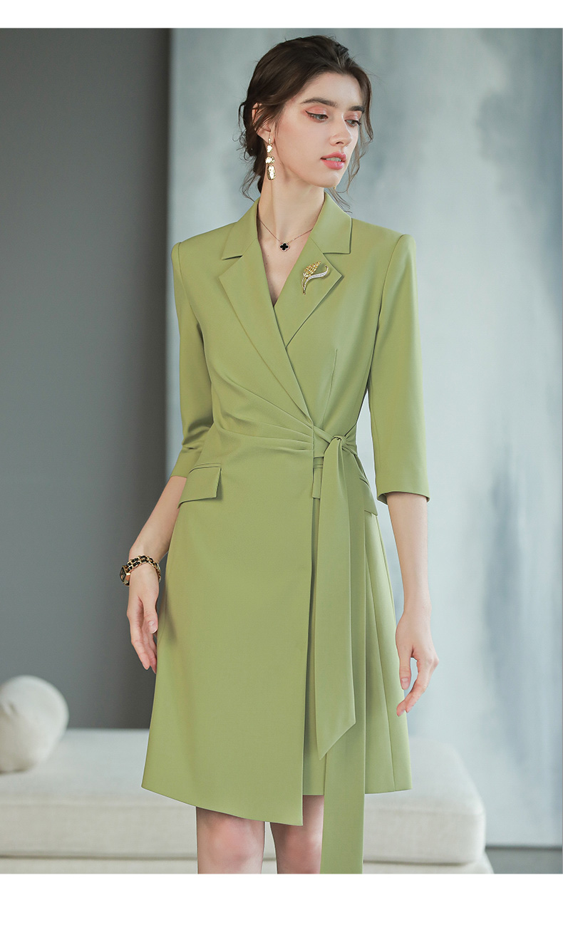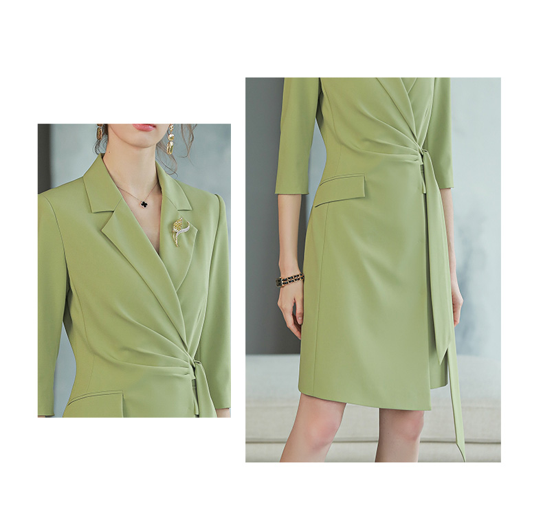 IWY/绿色显白西装连衣裙气质名媛新款小个子西服裙主持人正装Q755