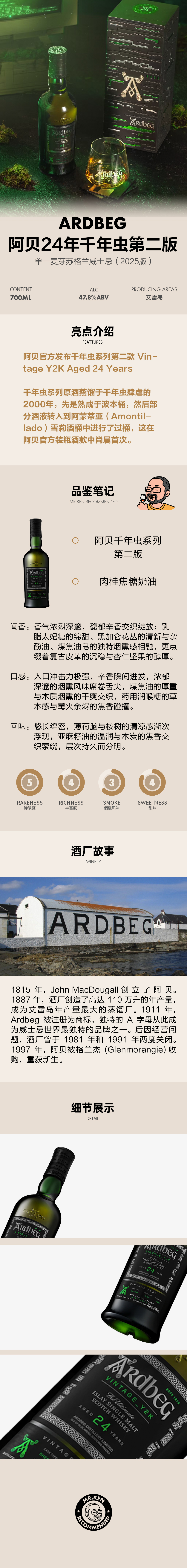 阿贝(Ardbeg)24年千年虫第二版单一麦芽苏格兰威士忌(2025版)