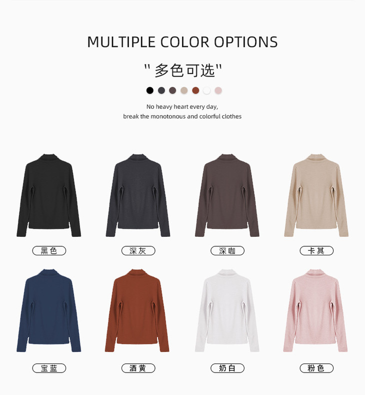 【两种领型 多色百搭】韩版高领打底衫 秋冬内搭修身 堆堆领 外穿打底 上衣长袖