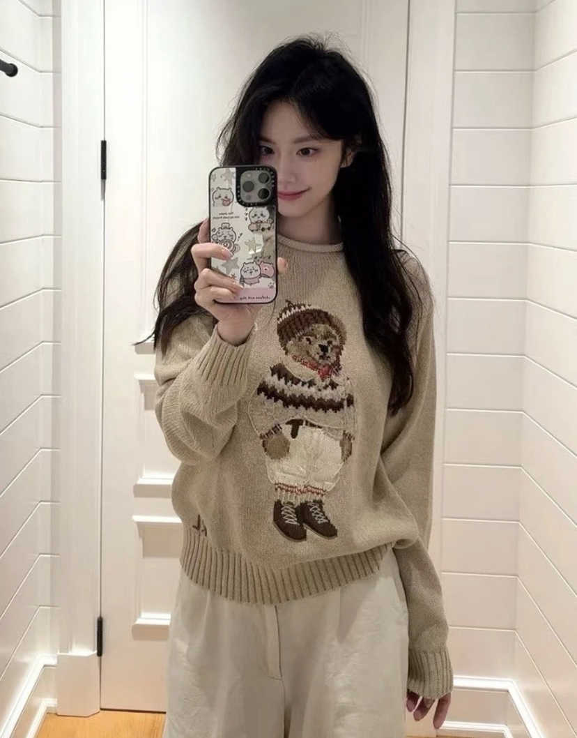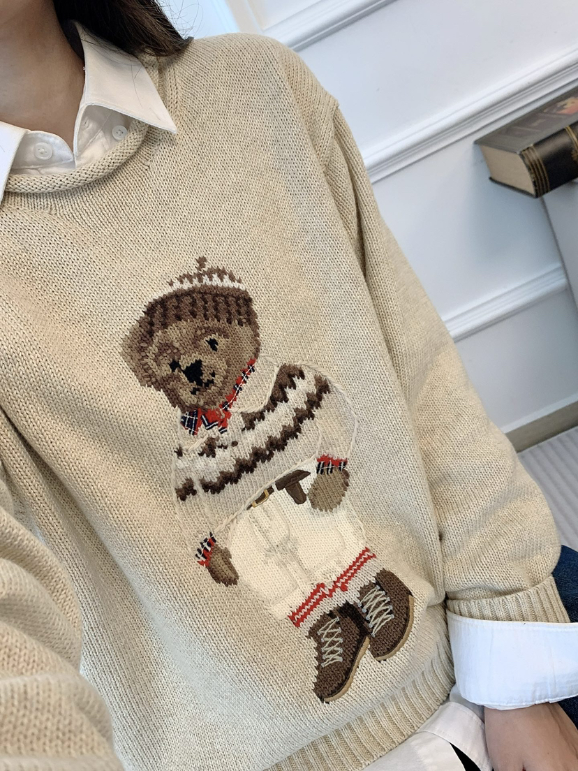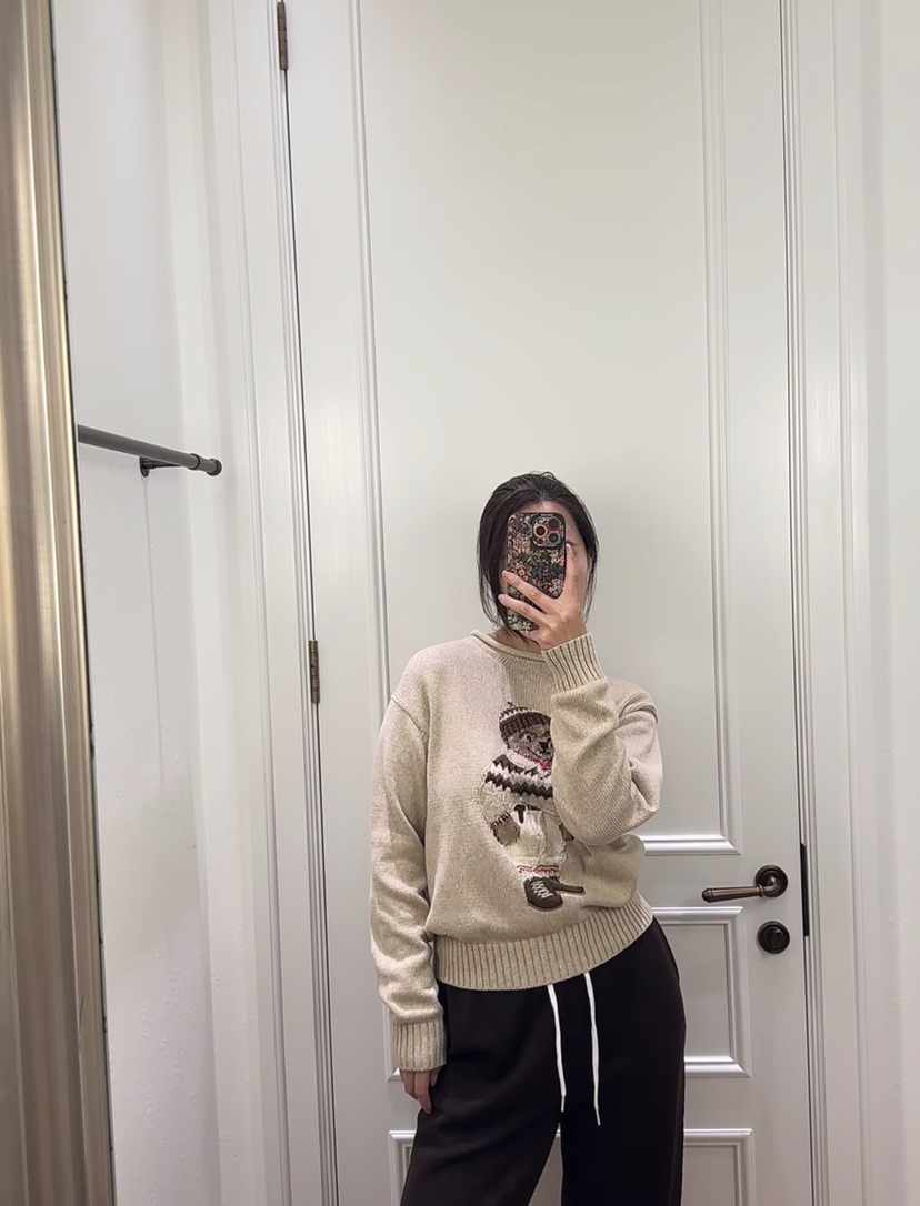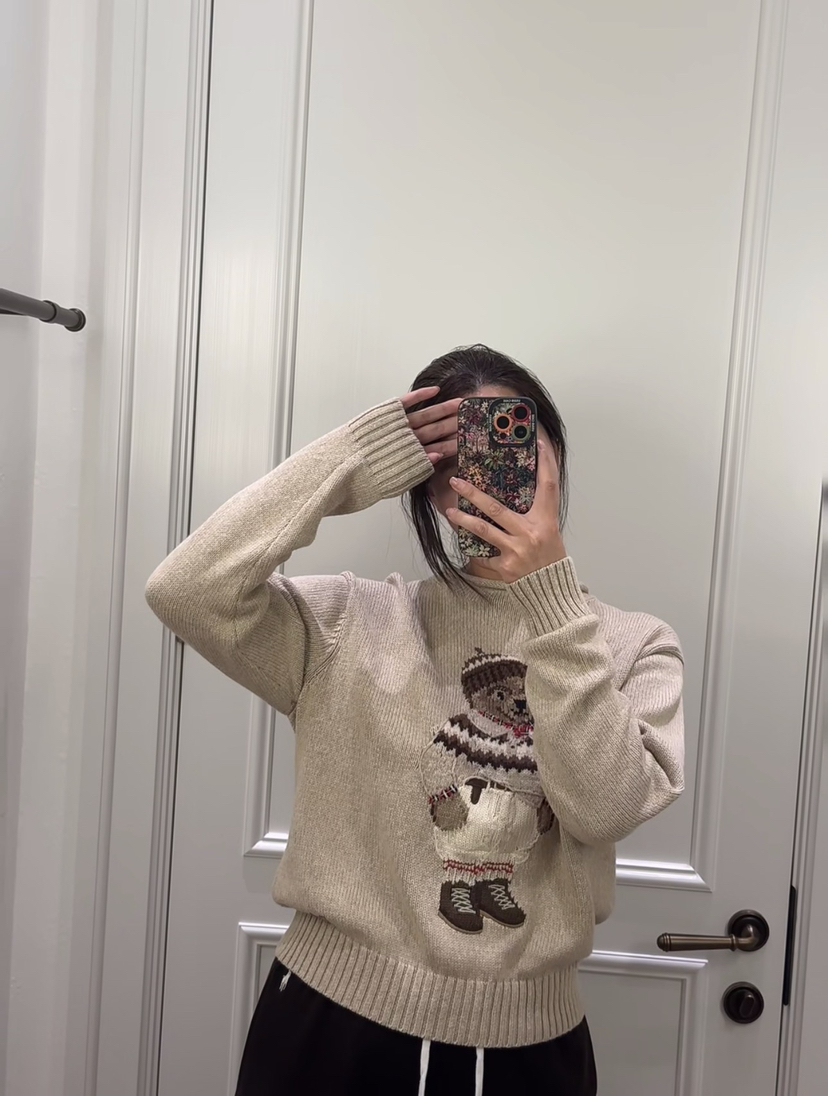 120-1 小马北欧风 棉质小熊 卷边针织毛衣