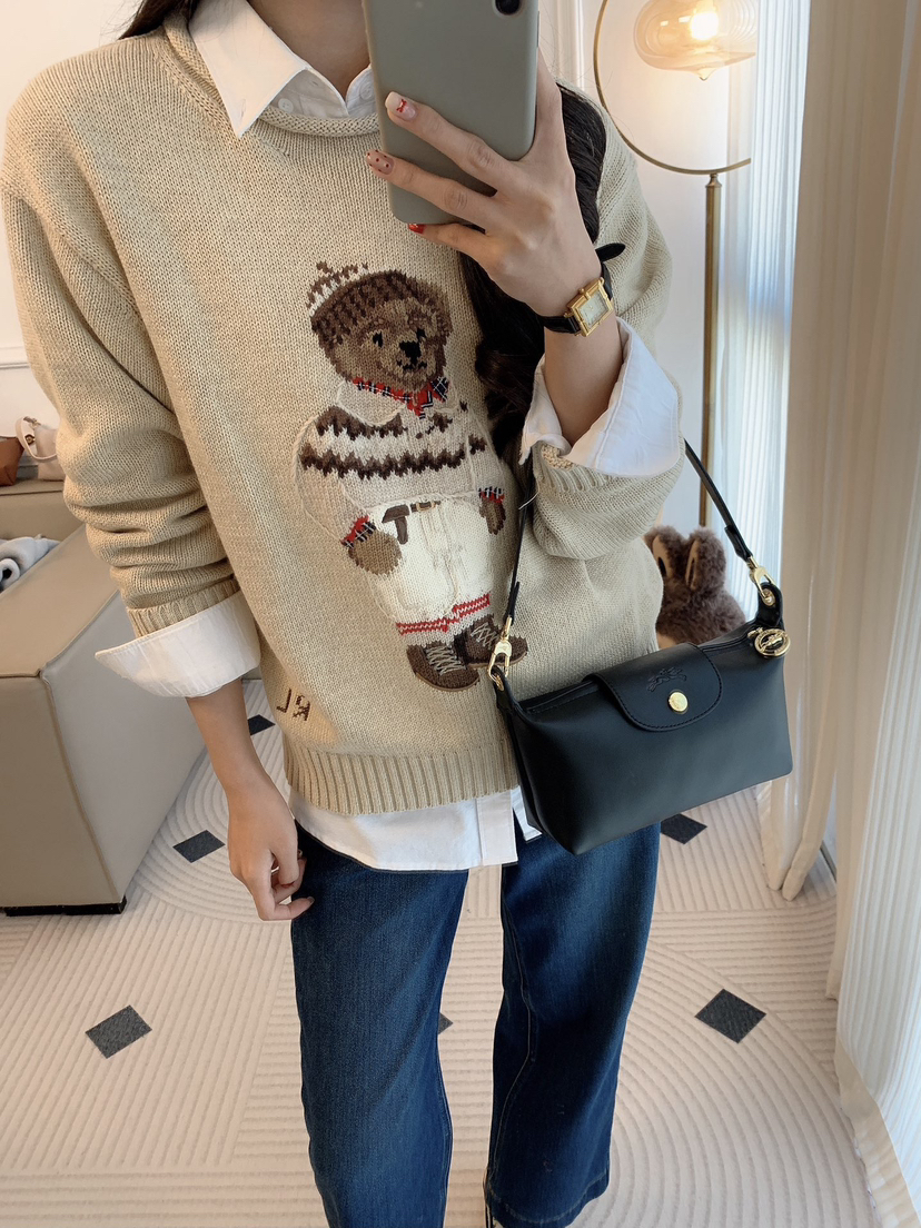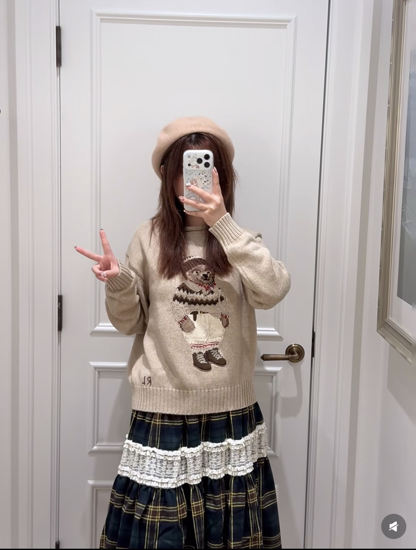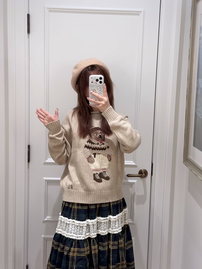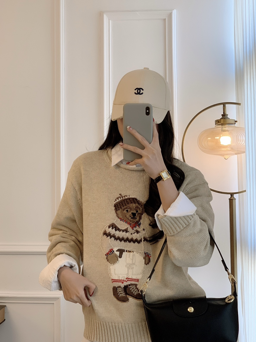 120-1 小马北欧风 棉质小熊 卷边针织毛衣