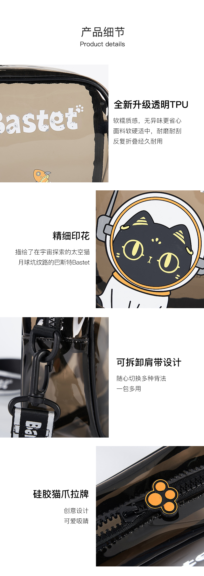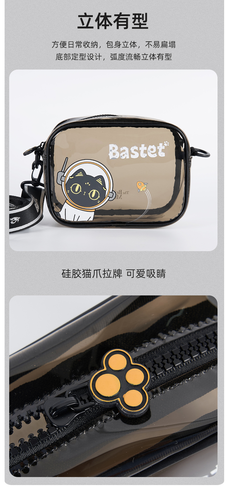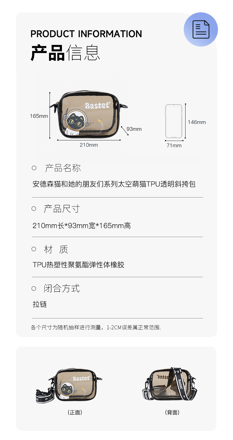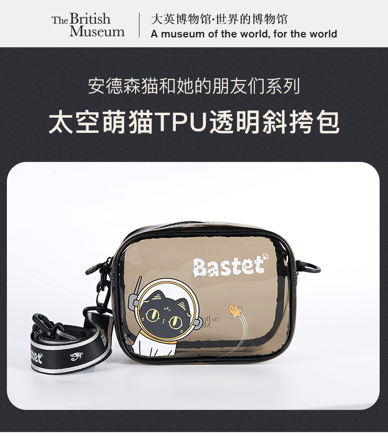 大英博物馆盖亚·安德森猫系列 太空萌猫TPU透明果冻单肩斜挎包