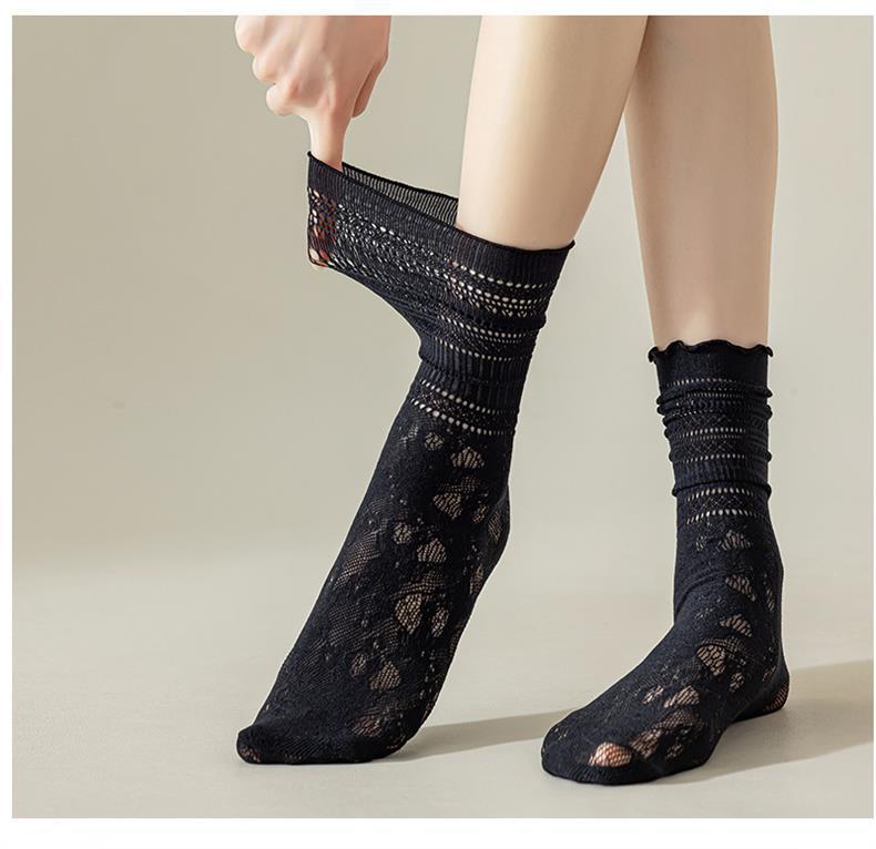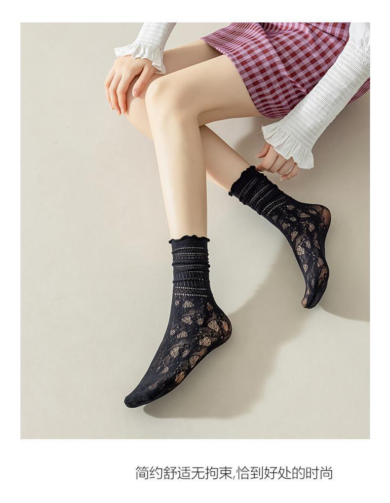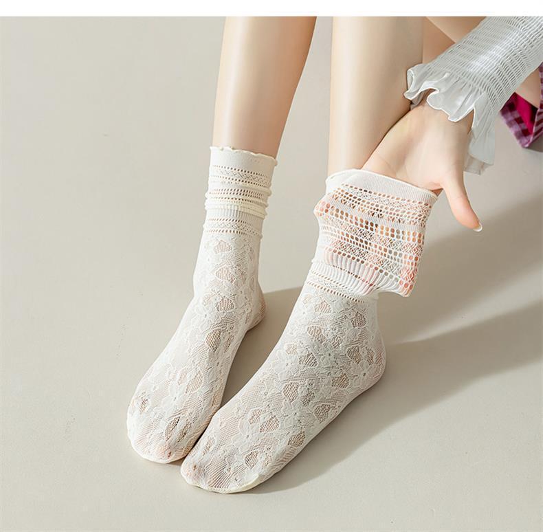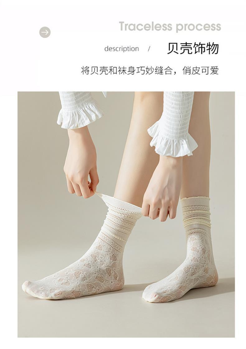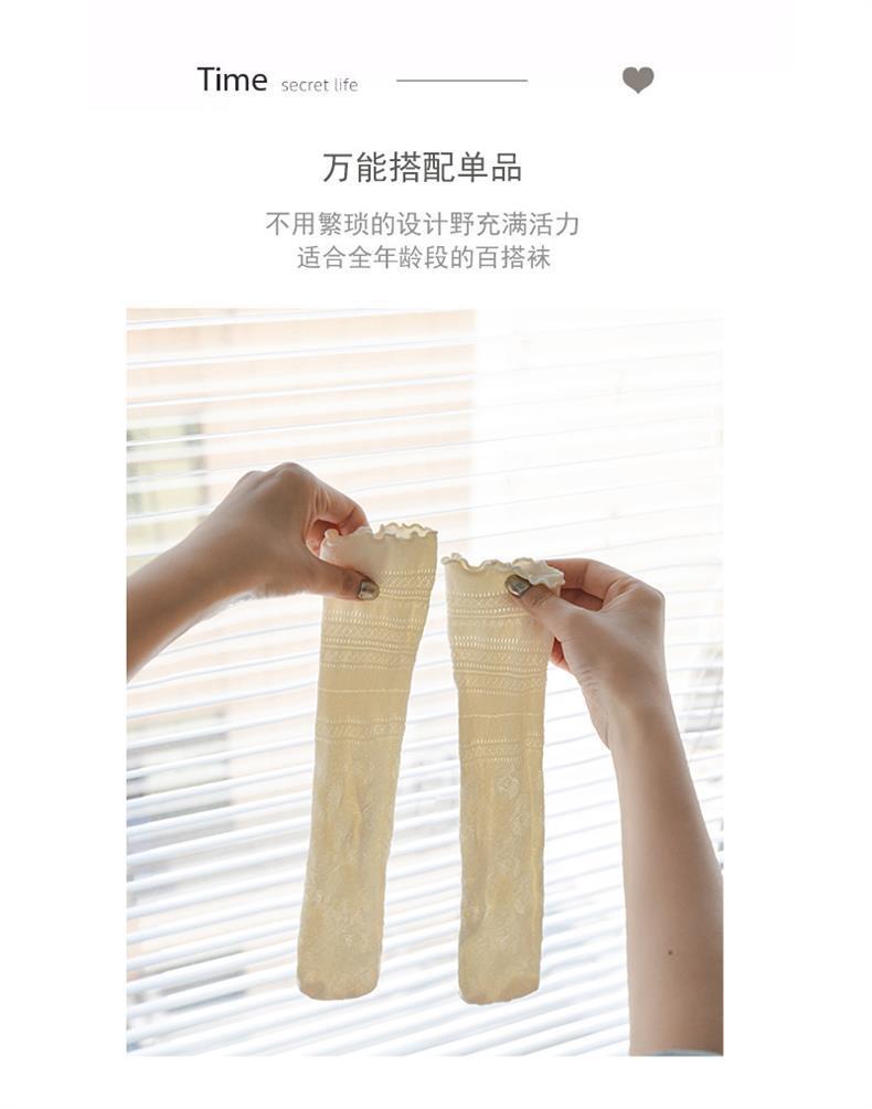 【一袜两穿!可直筒可堆堆】夏季白色袜子女堆堆袜夏季薄款蕾丝花边夏天透气网眼镂空木耳边中筒袜。ry